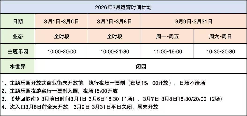 * 파크는 광둥 지역 문화를 충분히 보여주는 동시에 동서양의 조화를 이루고 하이테크 놀이 요소를 결합하여 야외 놀이 시설 외에도 일련의 혁신적인 실내 항온 극장과 여름철 시원한 프로젝트를 만들어 계절과 날씨의 제약을 허물고 사계절 내내 즐길 수 있는 테마파크로 거듭나 모든 방문객의 매 순간 즐거움을 만족시킵니다.