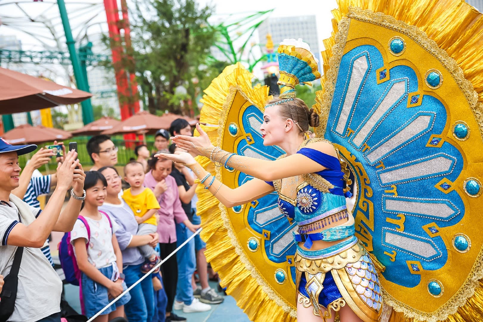* 광저우 융촹 파라다이스는 총 면적이 약 59.6만 평방미터에 달하며, 남월 문화와 영남 스타일이 돋보이는 대형 야외 테마파크입니다. 천년 상업 도시, 해상 실크로드, 영남 인상, 남월 고대 국가, 오양 전설, 몽환 정원 등 6가지 테마 구역은 과거와 현재를 넘나들며 놀라운 즐거움을 선사합니다.