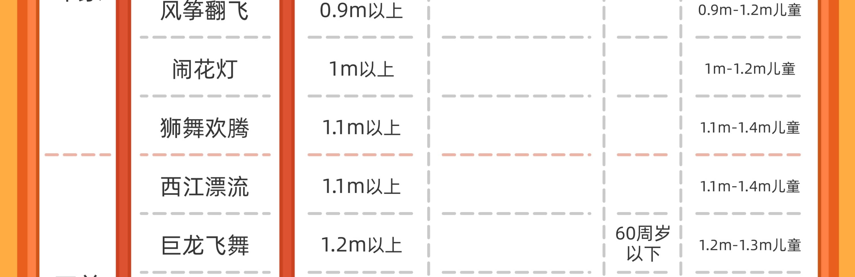 * 파크는 전 감각을 자극하는 8K 플라잉 시네마 "광둥을 넘어", 무한한 스릴을 선사하는 독창적인 듀얼 트랙 듀얼 카 롤러코스터 "쌍룡비무", 신비롭고 현실감 넘치는 4K+VR 체험 "자연 탐험" 등 31개의 다채로운 스타일의 하이테크 놀이기구를 갖추고 있어 스릴과 낭만, 인터랙티브 체험, 학습과 엔터테인먼트를 모두 만족시킬 수 있습니다.