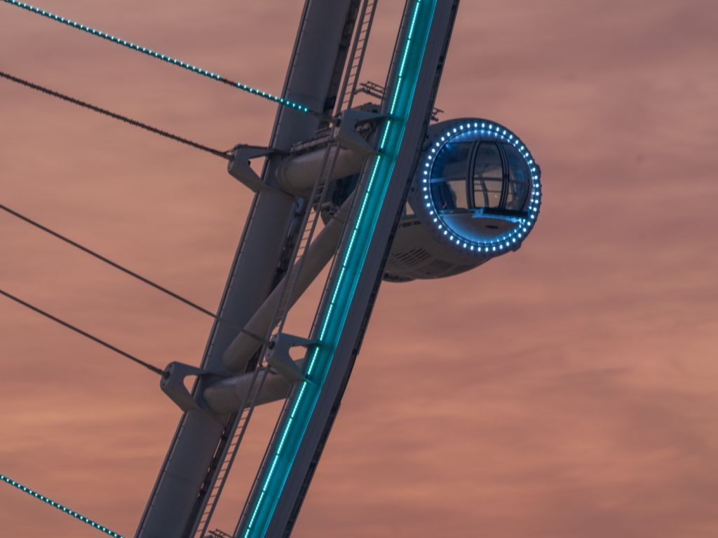 세계 최대 규모의 관람차가 작동하는 놀라운 모습을 가까이서 지켜 보세요.