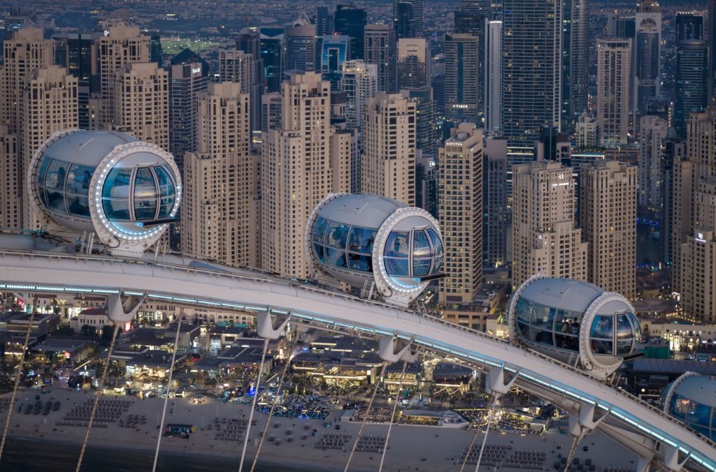 에어컨이 설치된 캐빈에서 편안하게, 지상 250미터 높이에서 두바이의 숨이 멎을듯한 전경을 감상해 보세요.