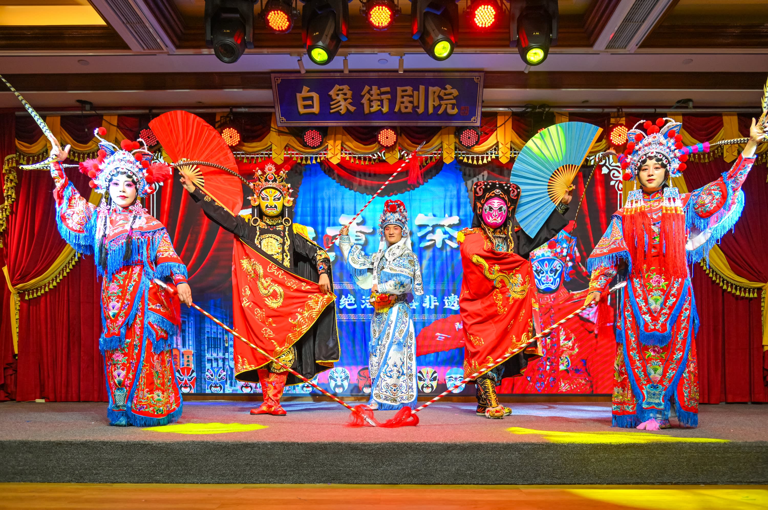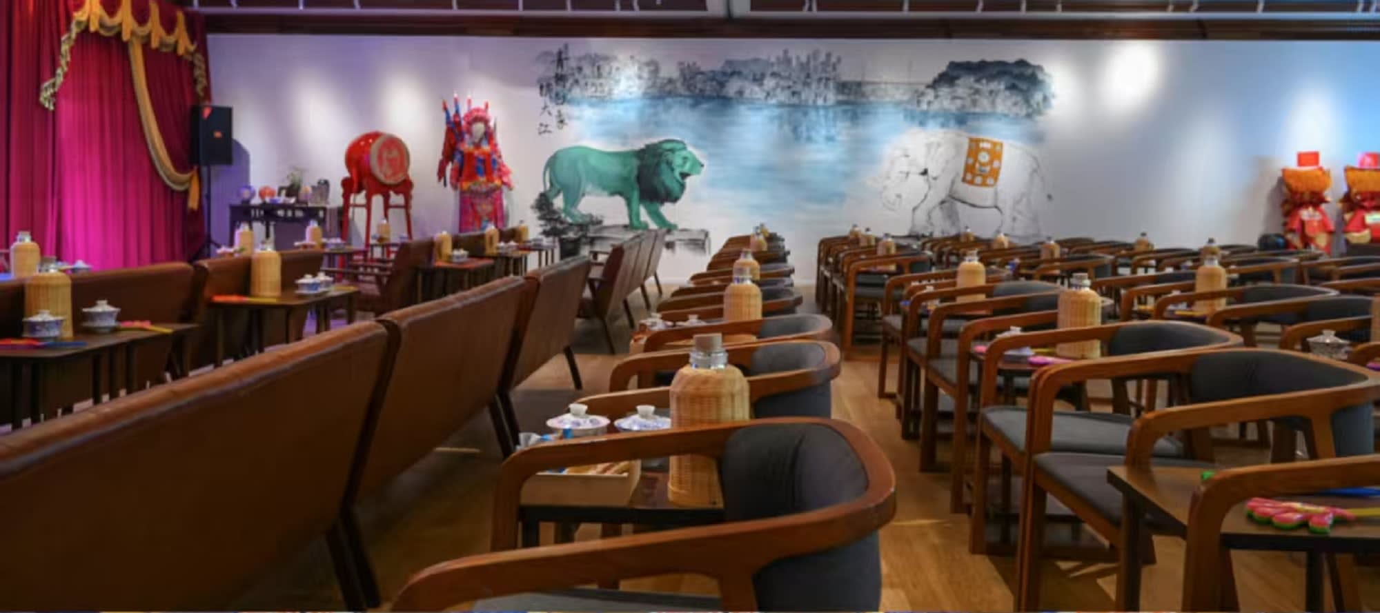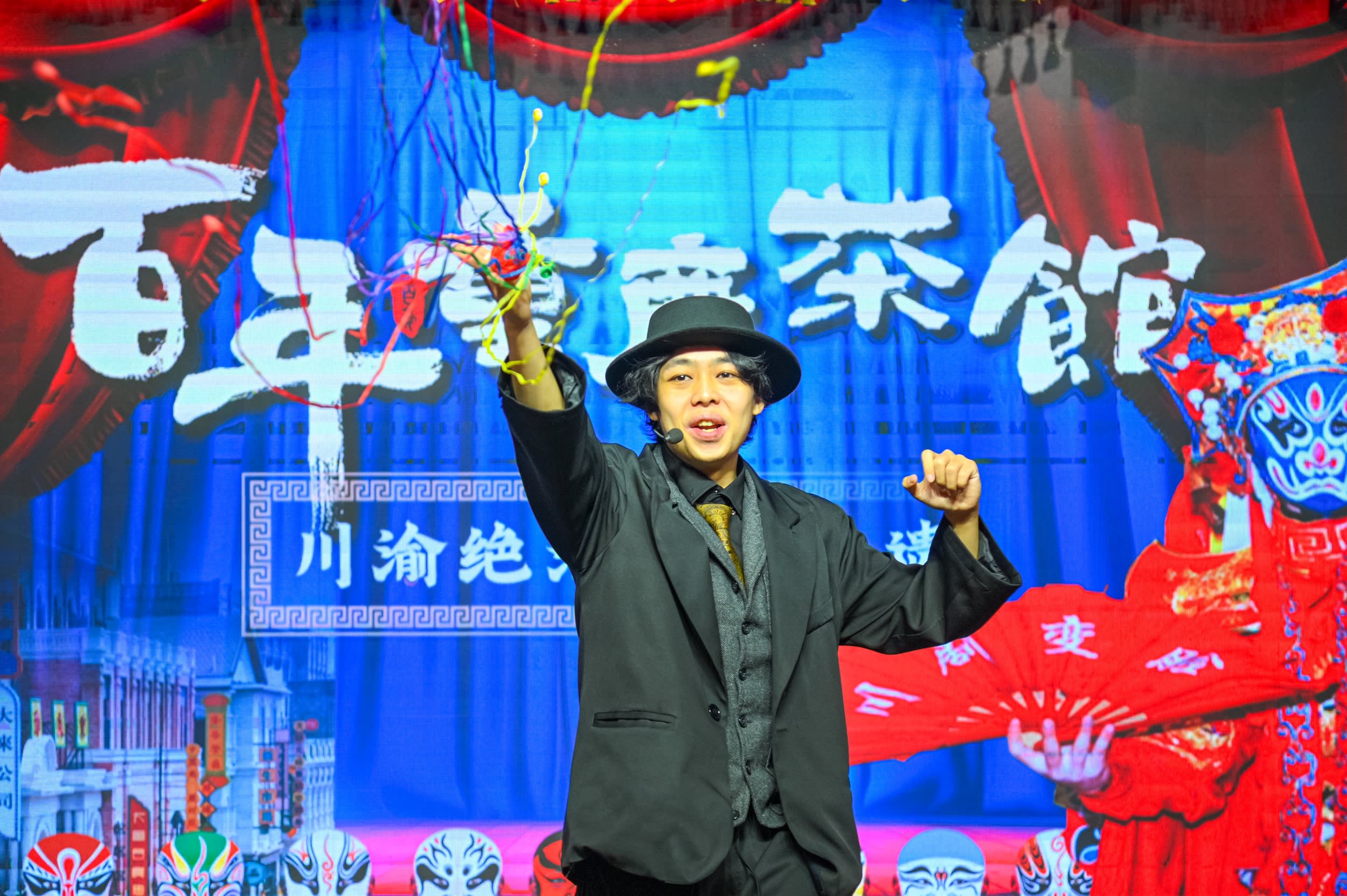 * <백년 충칭 찻집>의 특별한 공연 역시 시선을 사로잡습니다. 긴 주둥이 주전자 차예 공연에서는 차예가가 긴 주둥이 주전자를 들고 몸놀림이 날렵하게, 물줄기가 공중에서 아름다운 호를 그리며 정확하게 찻잔에 떨어뜨려, 뛰어난 기예를 보여줄 뿐만 아니라 관객에게 전통 차예의 독특한 매력을 느끼게 합니다. 천극 변검 공연은 더욱 충격적입니다. 배우가 순식간에 얼굴을 바꾸어 눈을 뗄 수 없게 만들며, 천극의 신기함과 운치를 충분히 보여줍니다.