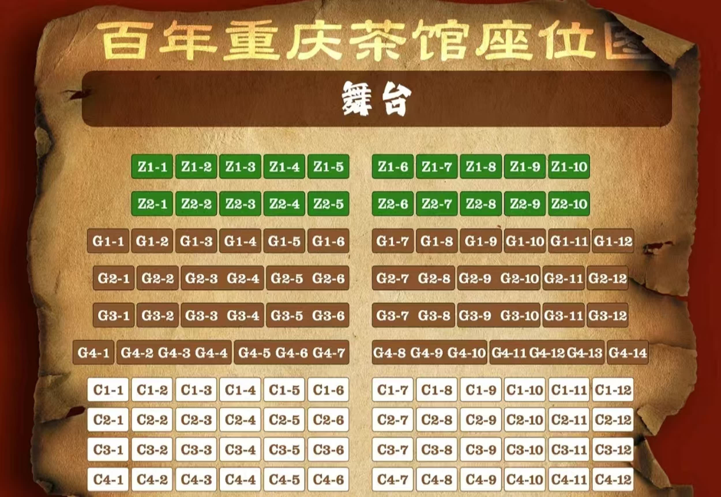 * 활동 시간: 오후 - 14:00, 15:30, 17:00; 저녁 - 18:30 (원하는 시간대를 선택하여 관람 가능하며, 각 활동 시간은 약 60분, 구체적인 시간은 현장 상황에 따라 달라질 수 있습니다.) * 찻집 주소: 충칭시 위중구 난지먼 가도 제팡둥루 263호 (바이녠 충칭 찻집) * 공연 시작 30분 전 도착 권장 * 일반석, 귀빈석, VIP석 구매 시 공연 관람 장소는 3층이며, 1인 파유 뚜껑 달린 찻잔(공연 없음) 구매 시 1층 마당입니다.