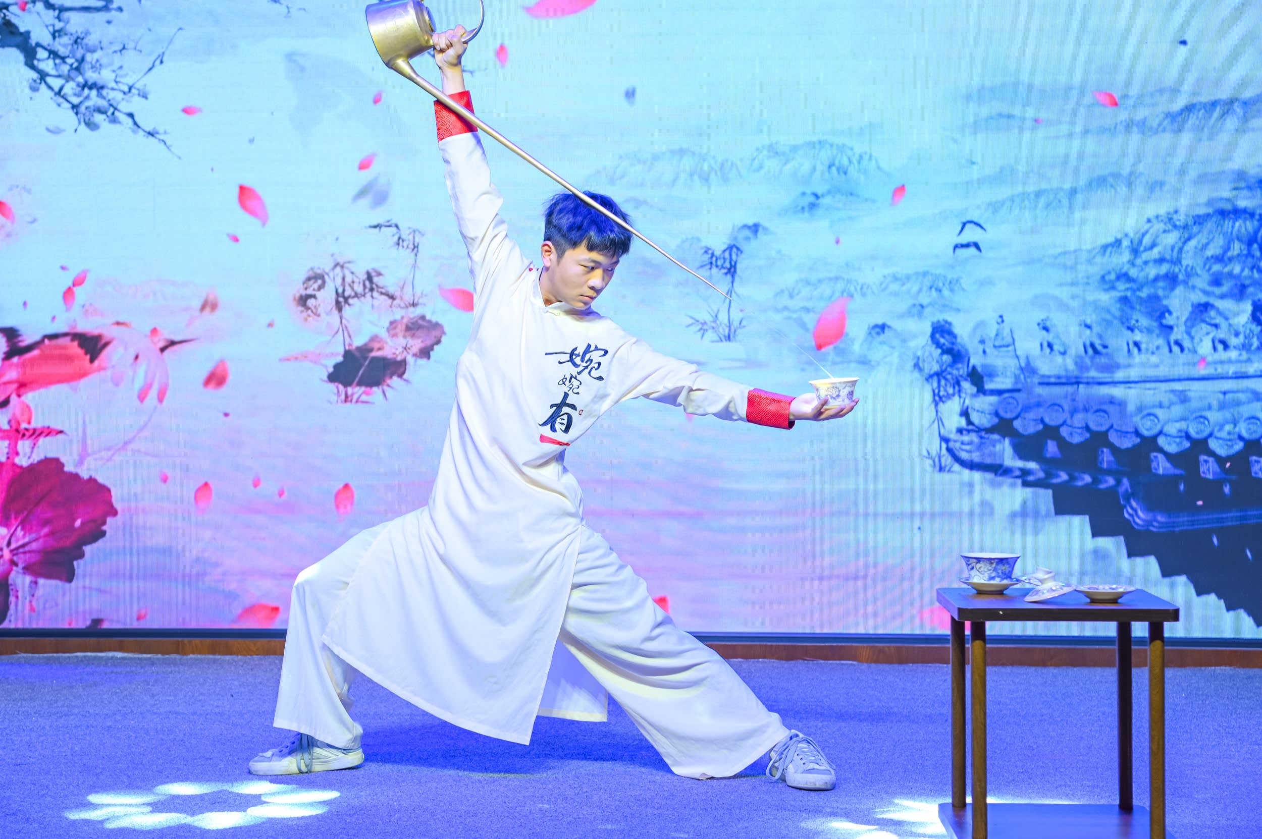 * 《무형 문화재의 놀라운 기술이 행사장을 압도하다》: 다예가가 긴 주전자 주둥이를 잡고 흐르는 물처럼 부드러운 동작으로 다예를 선보이며, 물줄기가 공중에서 아름다운 호를 그리며 정확하게 찻잔에 떨어져 전통 다예를 보여줄 뿐만 아니라 시각적인 즐거움을 선사합니다.