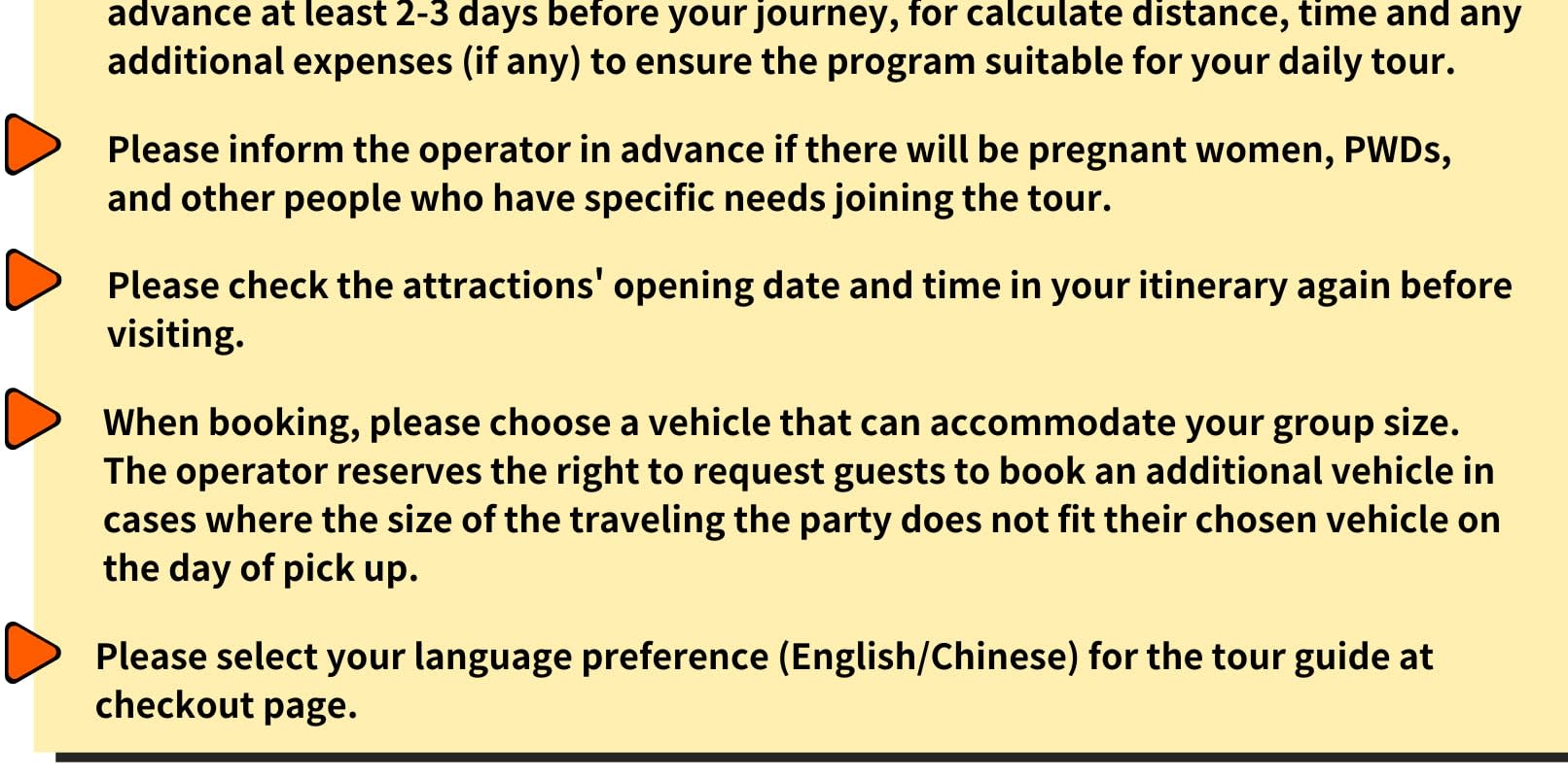 - 예약 조건 및 유의사항 * 공지: 영유아 및 아동도 탑승객 인원수에 포함되어야 합니다.