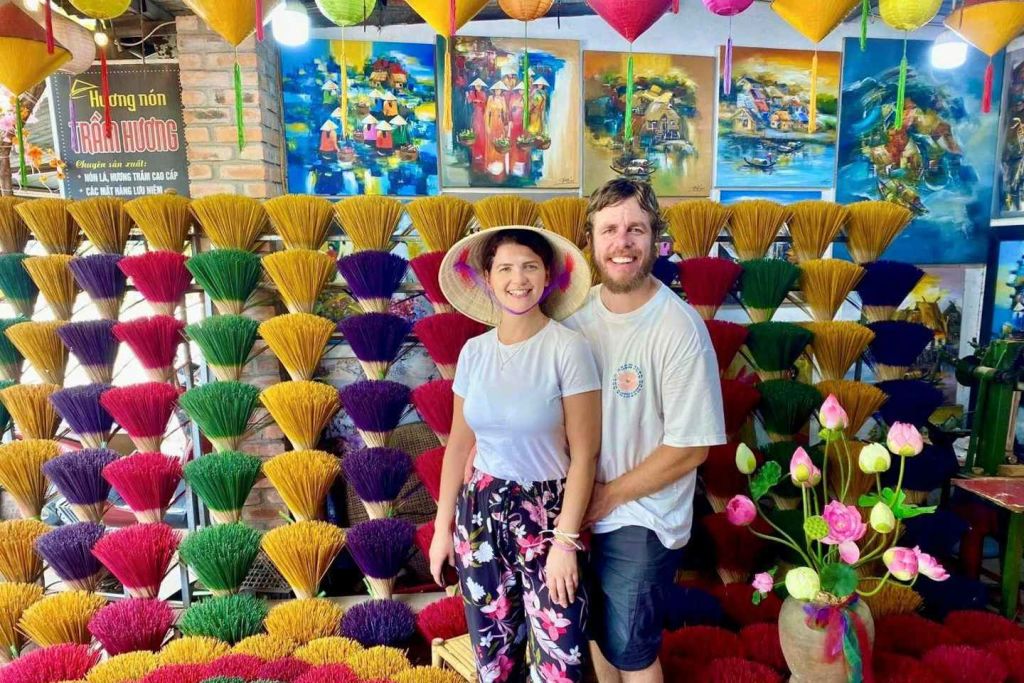 - 700년 전으로 거슬러 올라가는 투이쑤언후에 향 마을은 응우옌 왕조의 전통 향 제조 마을이었어요. 한때 왕실과 투안호아 및 푸쑤언 지역의 지역 주민들을 위한 공급 센터였습니다. 변화에도 불구하고 후에 향 마을은 여러 세대에 걸쳐 기술을 전수하며 보존되고 발전하고 있습니다. 향은 갈색과 빨간색의 두 가지 기본 색상으로 제작되어 지역 주민과 방문객의 정신적 삶에 도움이 됩니다.