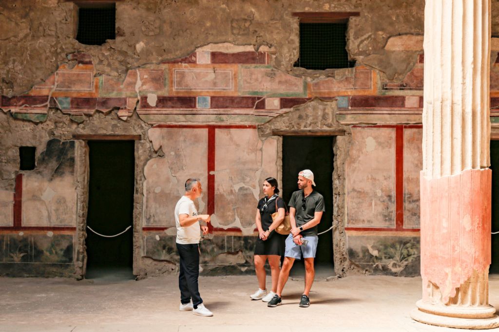 • 나폴리에서 일찍 출발하여 세계에서 가장 놀라운 고고학 유적지 중 하나인 폼페이로 바로 향하며 하루를 시작하세요. 전문 가이드와 함께 서기 79년 베수비오산의 폭발로 시간이 멈춘 로마 도시인 이 유네스코 세계 문화유산 보물을 탐험하세요. 웅장한 사원에서 활기찬 시장에 이르기까지 모든 발걸음은 고대 역사의 매혹적인 장을 드러냅니다. 폼페이의 놀라운 과거에 흠뻑 빠져든 후, 소렌토 반도의 보석인 소렌토로 여정을 계속하세요. 다채로운 골목길, 장인 상점, 멋진 바다 전망이 미로처럼 펼쳐진 매력적인 역사 지구를 가이드 워킹 투어로 둘러본 후, 자유 시간을 통해 지중해 분위기를 원하는 대로 즐기세요.