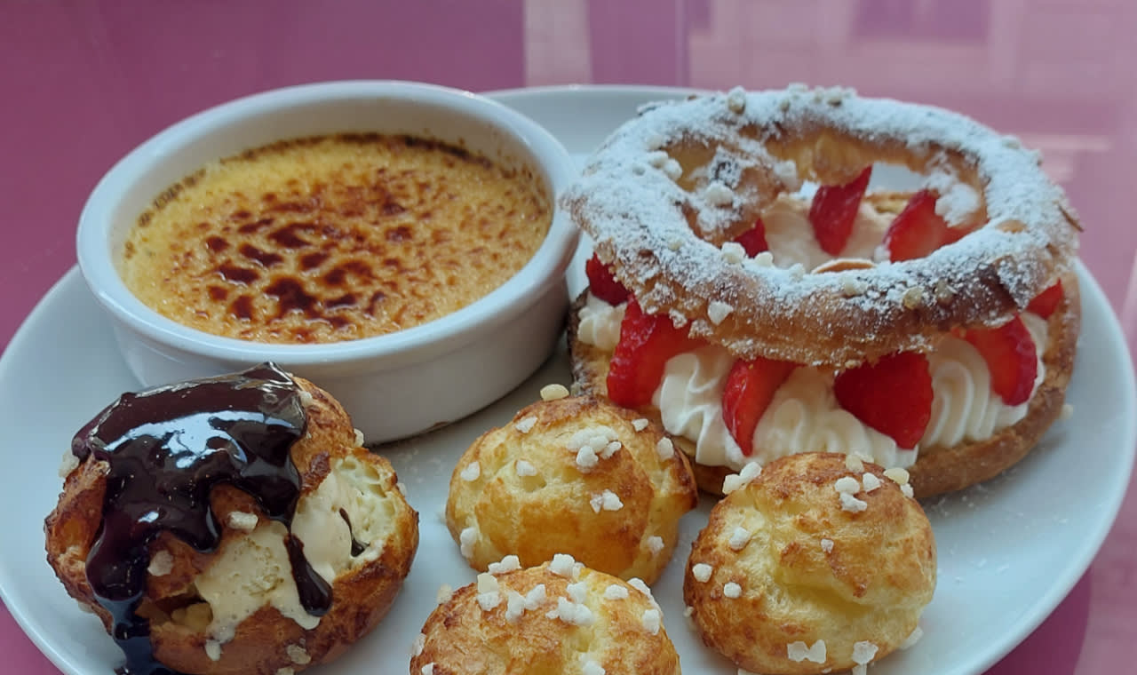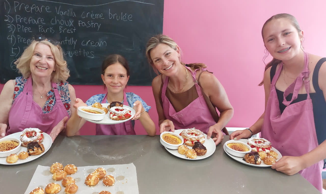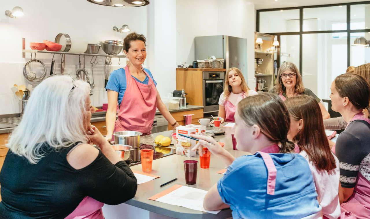 프랑스식 페이스트리와 마카롱을 직접 만들어보는 영어 수업에 참여해보세요. 2시간 30분 동안 초콜릿, 레몬, 카라멜, 피스타치오 등 두 가지 맛의 마카롱과 파리 브레스트, 마들렌, 초콜릿 라바 케이크와 같은 제철 페이스트리를 처음부터 만드는 방법을 배울 수 있습니다. 단계별 가이드에 따라 유명한 디저트의 비법과 기술을 배워보세요. 베이킹 후에는 차나 커피를 마시며 휴식을 취하고 직접 만든 디저트를 맛보며 셰프에게 궁금한 점을 물어보세요. 수업은 달콤하게 마무리됩니다. 직접 만든 페이스트리를 상자에 담아 집으로 가져가 친구와 가족들에게 새로운 솜씨를 뽐내보세요.