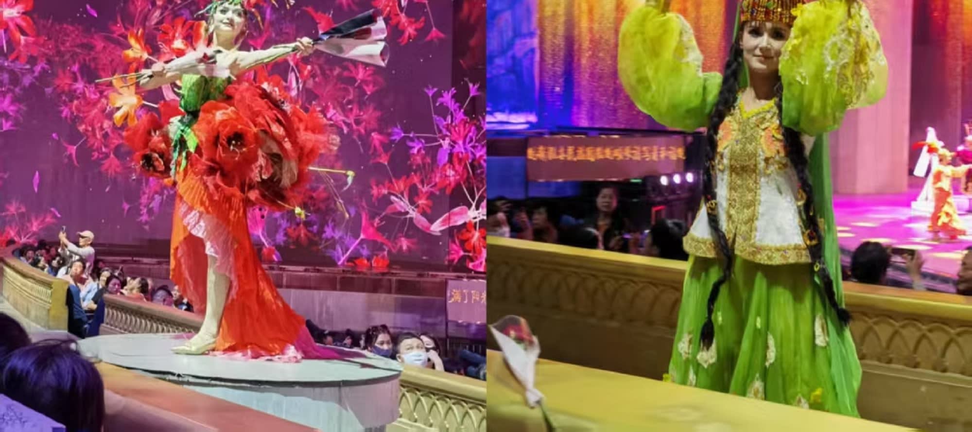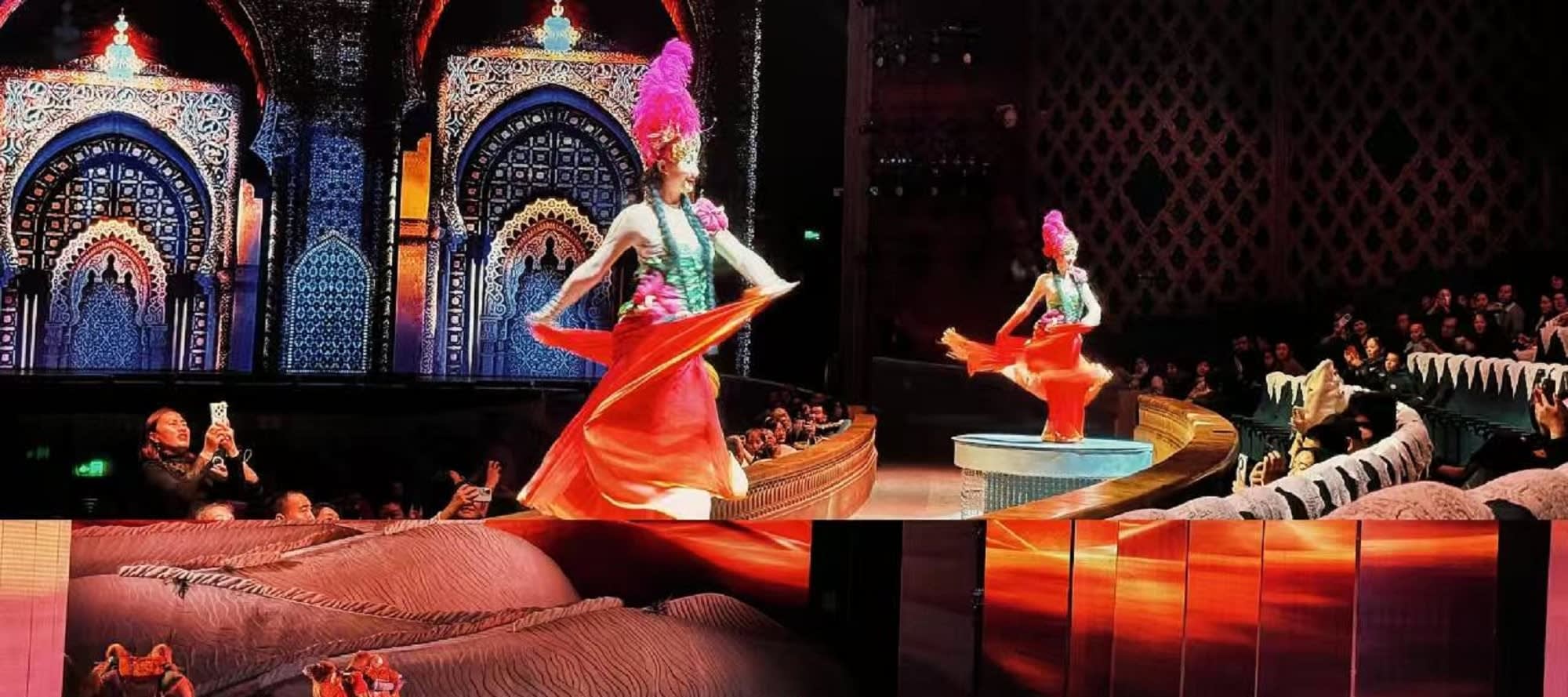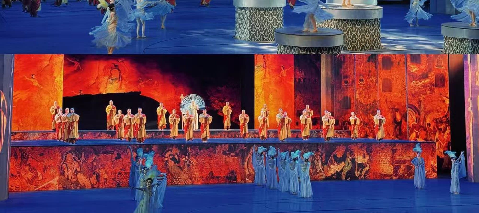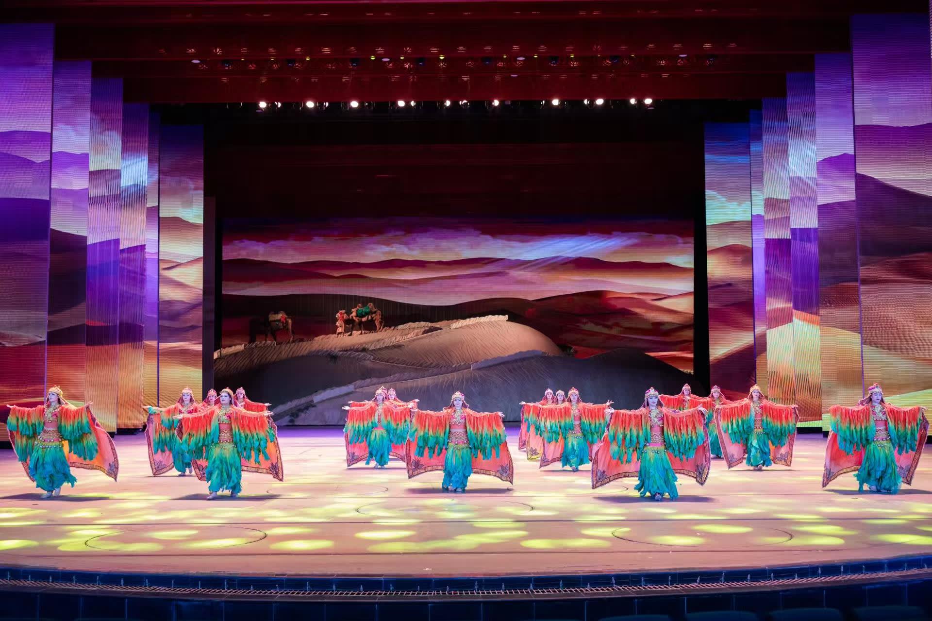 * 《압도적인 무대 특수 효과》: 첨단 광전 집합 제어 파노라마 다채널 기술을 활용하여 270° LED 대형 스크린, 3600제곱미터 실내 LED 전시 스크린과 함께 생생하고 화려한 시각 효과를 만들어냅니다. 무대에는 풀 컬러 레이저 타운, 디지털 워터, 파도치는 샘 등 고급 특수 효과가 장착되어 있으며, 40여 회의 장면 전환과 수천 세트의 장치가 무대와 연동되어 서역의 특색 있는 경관을 실감나게 재현하여 관객에게 몰입형 체험을 선사합니다.