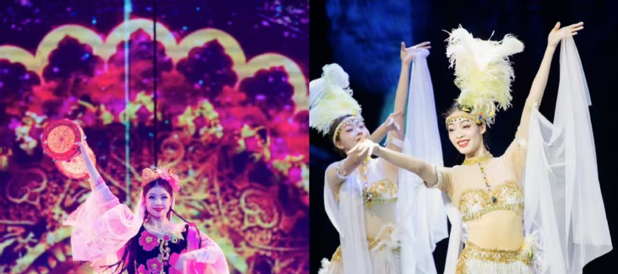 * 《깊은 문화적 토대》: "천회서역(千回西域)"은 고대 실크로드를 맥락으로 하여 "대애(大爱)", "옥혼(玉魂)", "몽회(梦回)", "생명(生命)", "연정(燃情)", "초원지련(草原之恋)"의 6개 장으로 나뉘어 서역 36개국의 전설, 다민족의 풍정 가무, 실크로드 상인의 웅장한 서사시를 자세히 이야기합니다. 손북의 진동, 도타르의 구성진 가락, 경마와 양 뺏기의 호방함이 춤사위에 녹아들고, 12무카姆의 선율이 복식의 주름 사이로 흘러나와 실크로드의 "다원일체" 문화 융합의 성대한 광경을 재현합니다.