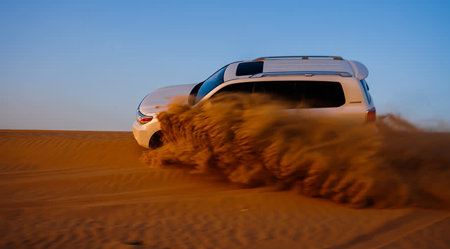 * 사륜구동 차량을 타고 해 질 무렵의 사막을 질주하며 짜릿함을 만끽합니다.