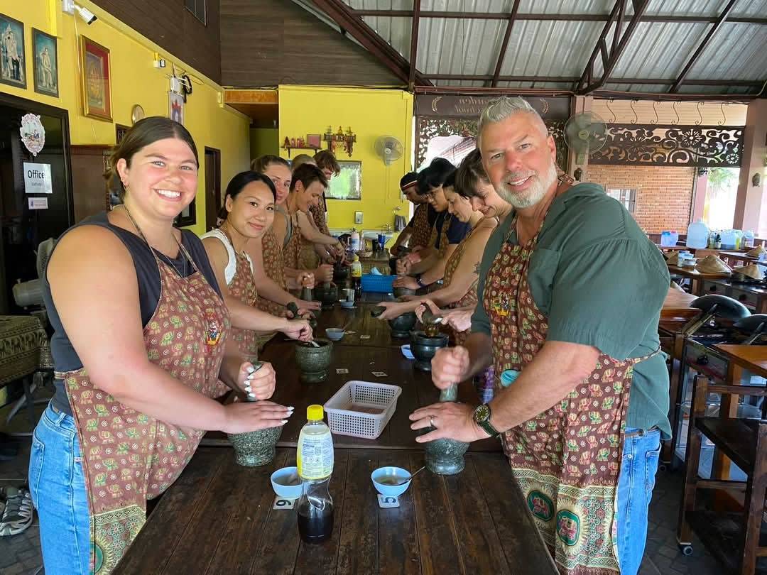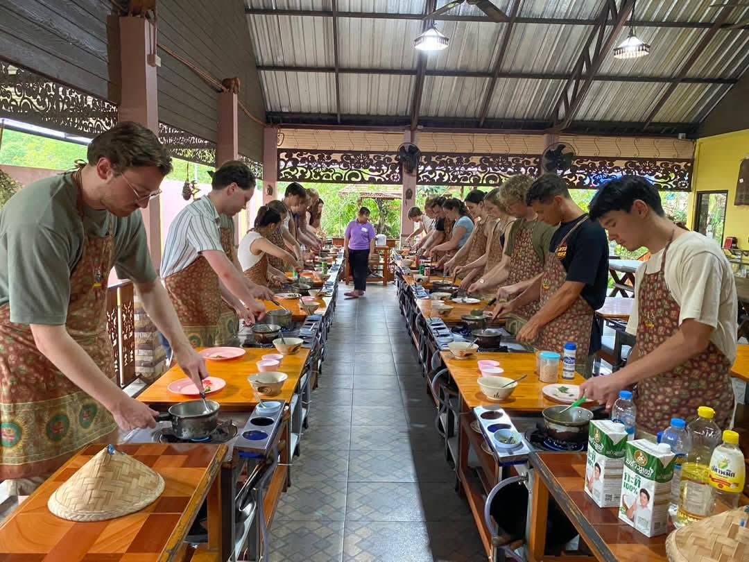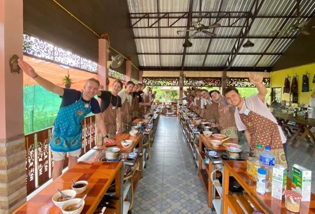 저희 요리 학교에서 편안한 시간을 보내세요. 친절하고 교육 수준이 높은 태국인 직원으로부터 태국 요리법을 배워보세요. 모든 것을 직접 준비하고 요리합니다. 또한 모든 나무와 식물이 있는 정원과 향신료와 허브가 있는 쇼 공간은 태국 음식과 요리에 대한 더 많은 인상을 받을 수 있도록 여러분을 초대합니다. 요리하는 중간중간에 호숫가의 정자에서 휴식을 취하고, 폭포 소리를 듣고, 정원 전망을 즐길 수 있습니다.