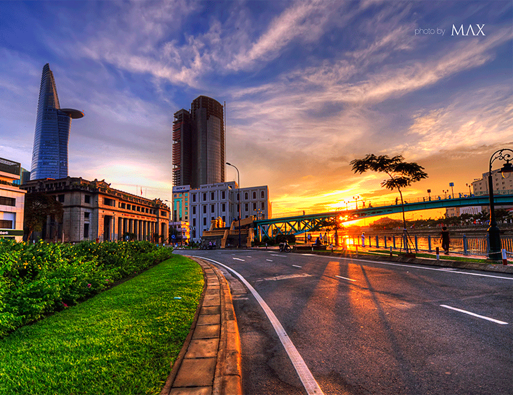 Thu Thiem 터널 반대편으로 일출 감상