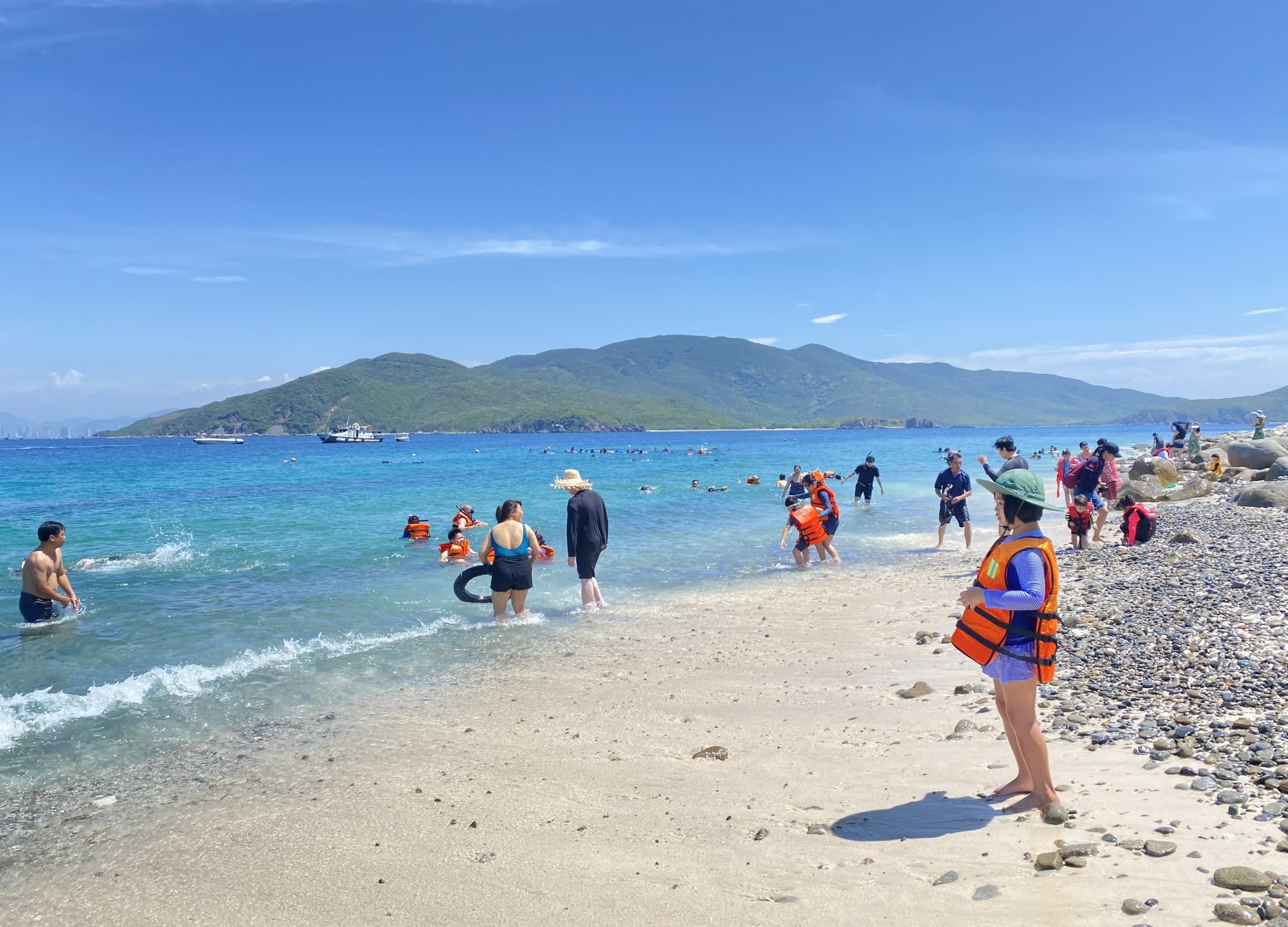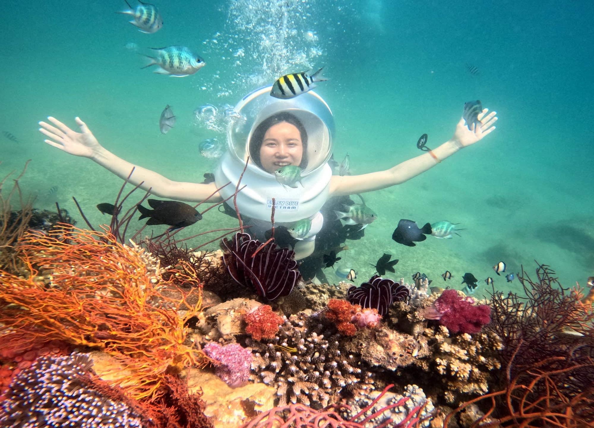 나트랑에서 가장 아름답고 인기 있는 섬을 방문하여 투명한 바다를 통해 산호와 물고기를 볼 수 있습니다.
