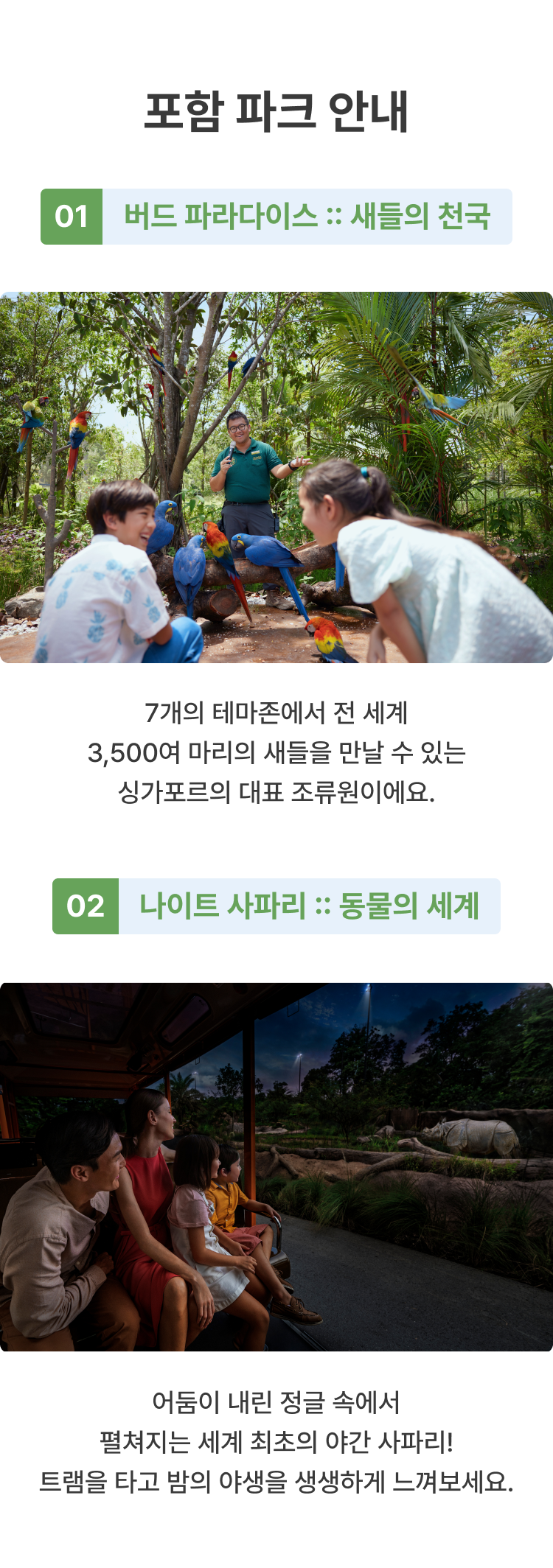 • 아시아 최초 야간 사파리 '나이트 사파리'와 새로운 새들의 천국 '버드 파라다이스'를 모두 입장!