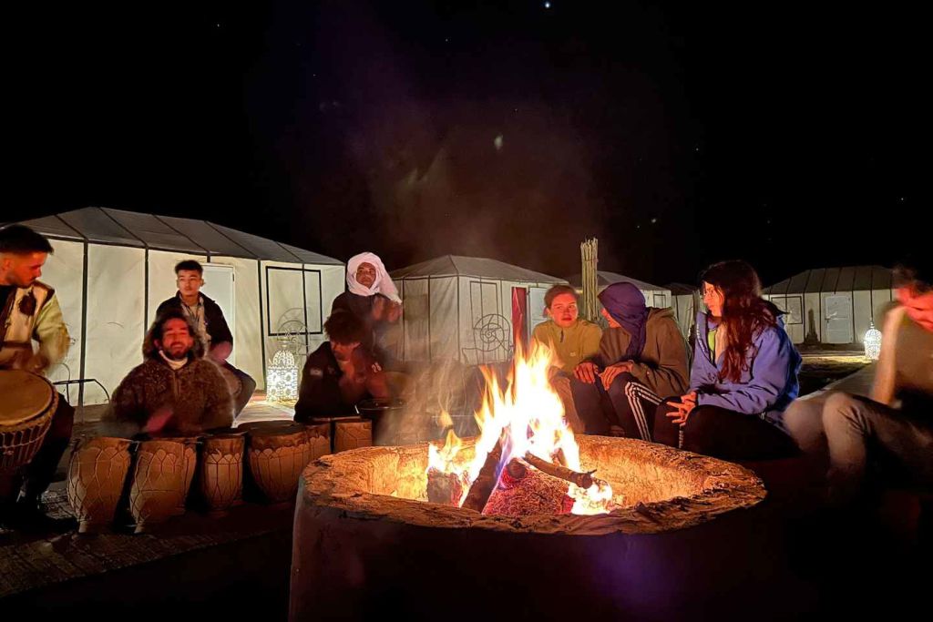베르베르 사막 캠프에서 하룻밤을 보내며 별빛 아래에서 음악과 저녁 식사를 즐겨보세요