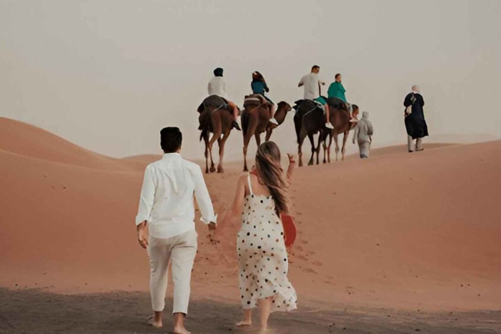 아침 식사 후 호텔을 출발해 팅기르와 그 드라마틱한 토드가 협곡으로 이동합니다. 협곡을 탐험할 자유 시간을 가집니다. 현지 카페에서 점심을 즐긴 후 메르주가로 이동해 낙타 카라반과 합류합니다. 에르 체비 사막의 모래 언덕을 낙타 등 위에서 체험하고 일몰을 감상합니다. 밤이 되기 전에 사막 캠프에 도착해 별빛 아래에서 진정한 모로코식 저녁 식사를 즐깁니다. 현지 유목민들이 전통적인 탐탐 드럼 연주 방법을 가르쳐주고 공연을 선보입니다. 저녁 식사와 함께 밤을 보내세요. 3일차: 메르주가 우아르자자테 - 마라케시 아침 일찍 일출을 감상한 후(선택 사항) 운전사가 마라케시로 돌아가는 이동을 위해 기다리고 있습니다. 현지 레스토랑에서 점심을 드시며 중간에 휴식을 취하세요. 오후 8시경 원래 출발지점이나 제마 엘 파나 광장에 내려드립니다. 베두인 캠프에서의 밤을 업그레이드할 수 있습니다. 예를 들어, 럭셔리 사막 캠프는 개인용 텐트, 전용 샤워 시설, 화장실, 5성급 편의 시설을 갖춘 옵션이 있습니다. 이 업그레이드는 인당 예약이 필요합니다.