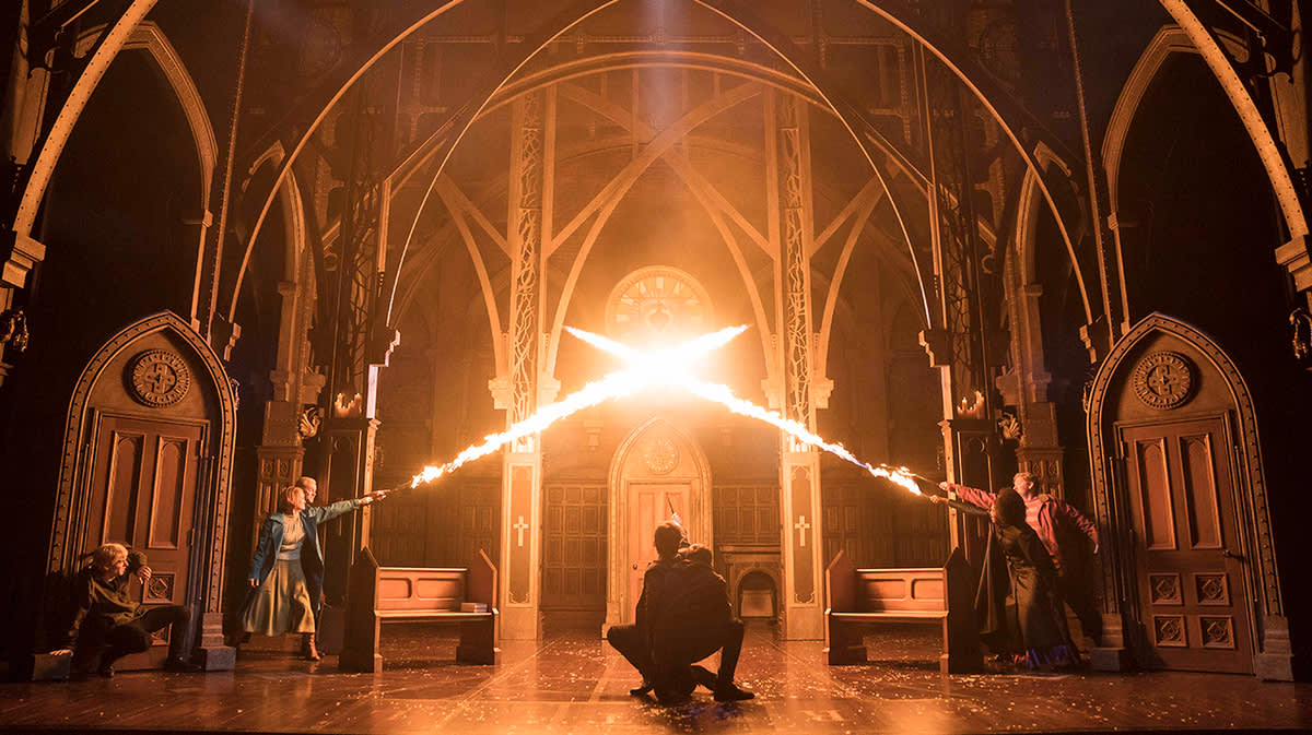 특히, 어둠의 최고 악인, 디멘터가 공연장을 날아다니는 장면과 델피가 집착하는 주문을 극장 전체에 뒤덮이게 하는 장면은 일제히 관객에게 충격을 준다. 호그와트에 일반인처럼 입학해 갑자기 케이프(망또)를 휘날리며 모두가 시작하는 오프닝 댄스, 어떻게 조명을 썼을까 궁금할 정도로 시간을 되돌리는 장면과 시간여행을 떠난 알버그와 스콜피어를 표현하기 위해 진짜 수족관 같은 물 무대를 쓴 장면들도 압권이다. 마법 이야기답게 무대는 정말로 마법 그 이상의 마법을 보여준다.