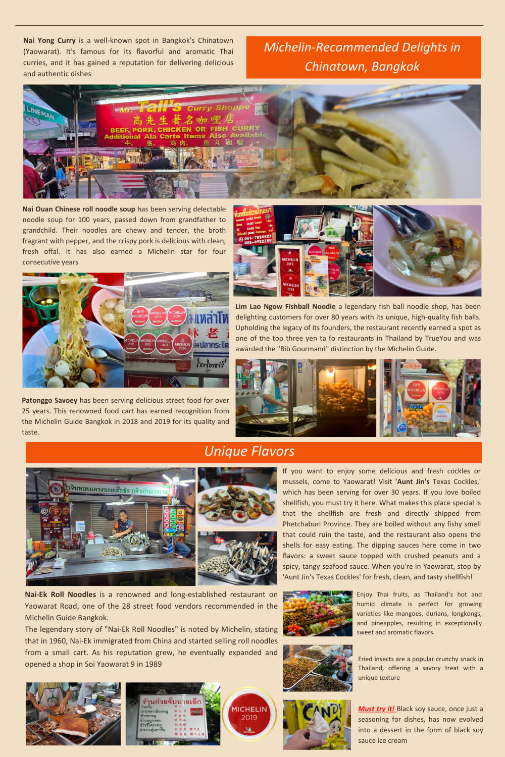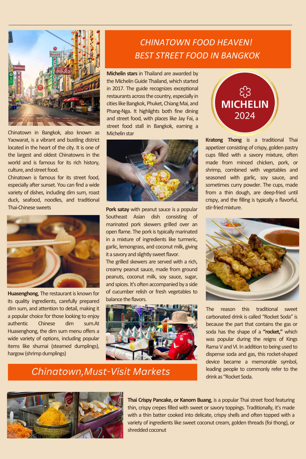 * 차이나타운 미식 투어: 활기 넘치는 차이나타운 거리를 거닐며 가이드의 흥미진진한 이야기를 들어보세요. 차이나타운의 역사, 건축물, 방콕 요식업계에서의 역할에 대한 이야기를 접할 수 있습니다.