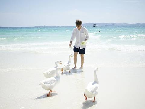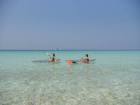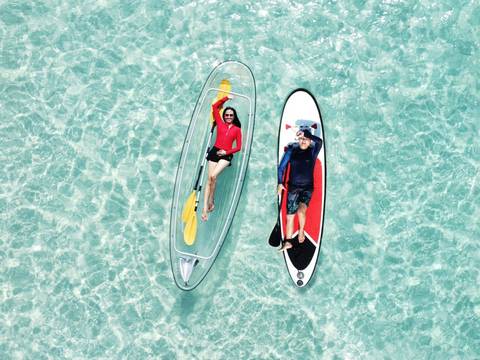한적한 핫티엔 비치에서 휴식과 투명 카약 체험, 섭보트 체험, 거위 먹이 주기 체험도 할 수 있고, 해양 스포츠를 각자 취향에 맞게 선택할 수 있어요!