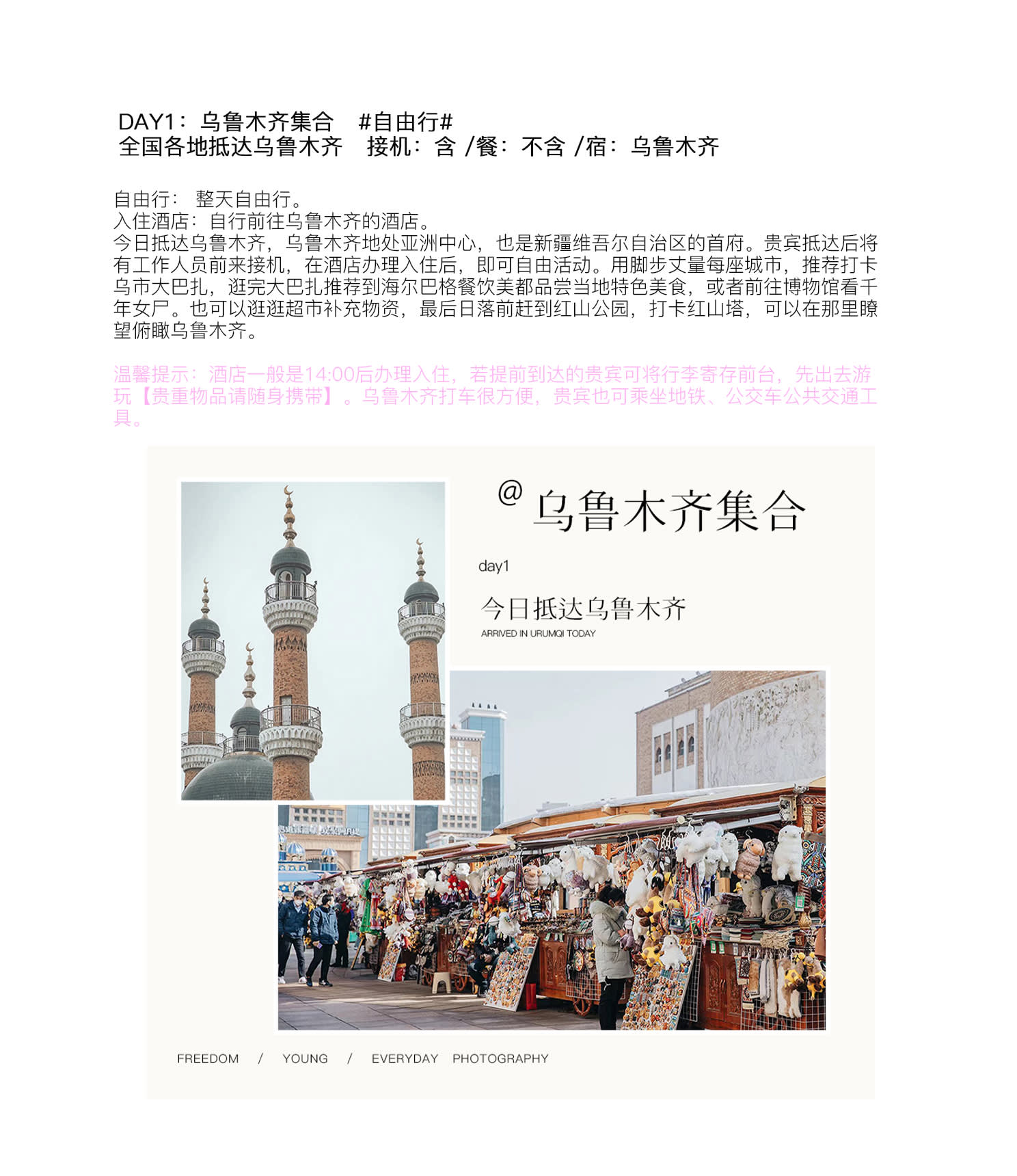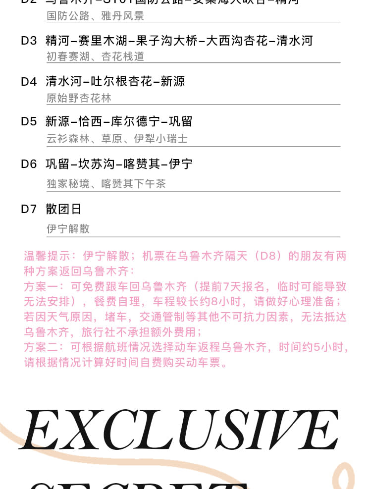 * 항공편이 우루무치 다음 날 출발인 분들은 우루무치까지 무료 차량 이동 가능 (7일 전 예약 필수, 임박 시 예약 불가할 수 있음)