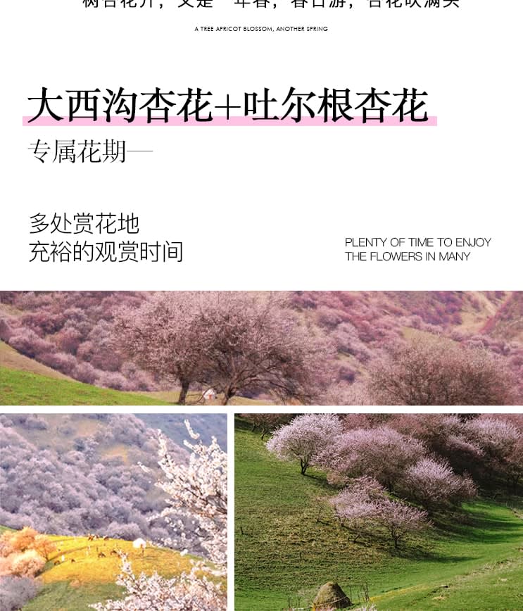 * 따뜻한 알림: 살구꽃은 매우 약한 꽃 종류에 속하며, 당사는 과거 개화 시기 데이터를 기반으로 일정을 예측합니다. 극단적인 날씨로 인해 살구꽃이 일찍 질 수도 있으며, 개화 시기는 매우 불안정하므로 합리적인 기대를 부탁드립니다.