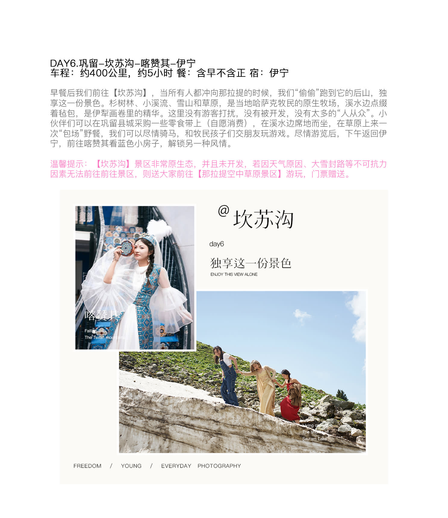 * 따뜻한 알림: 【칸수거우】 경구는 매우 자연 그대로이며 개발되지 않았습니다. 날씨, 폭설로 인한 도로 폐쇄 등 불가항력적인 요인으로 경구에 갈 수 없는 경우 【나라티 공중 초원 경구】로 모셔다 드리며, 입장권은 무료로 제공됩니다.