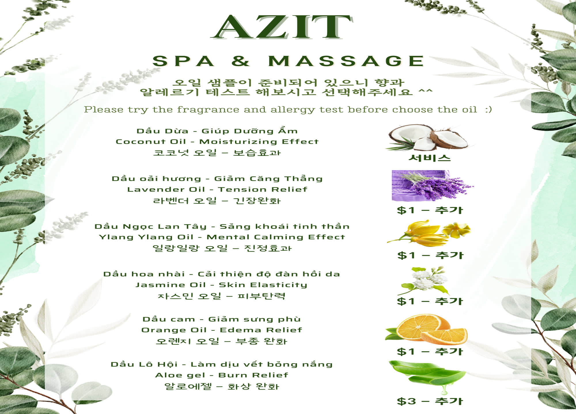 (오일 선택에 따른 추가비용은 현장에서 결제해주세요!)