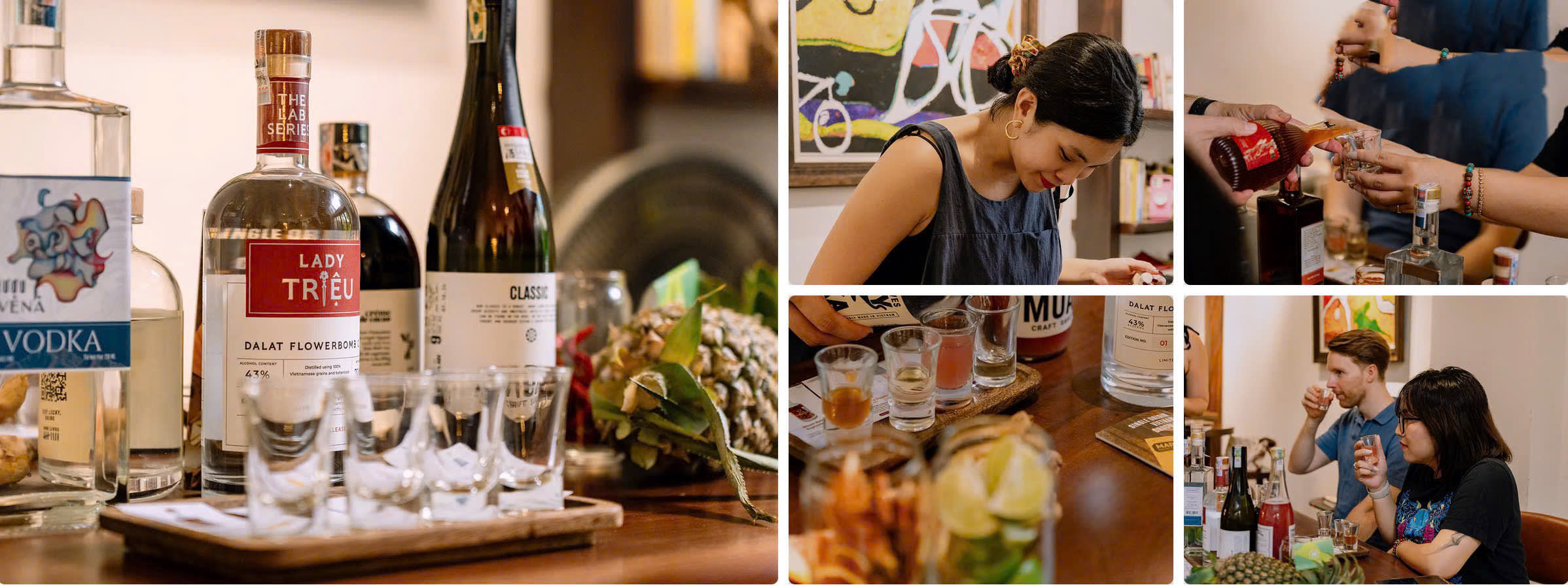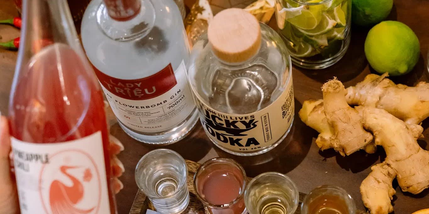* 사케, 진, 럼, 위스키, 보드카를 포함한 4가지 특별한 베트남 수제 증류주 시음. Jovel Chan이 엄선하고 계절에 따라 업데이트되며, 사이공 Social에서만 독점적으로 제공되는 제품이 많습니다.