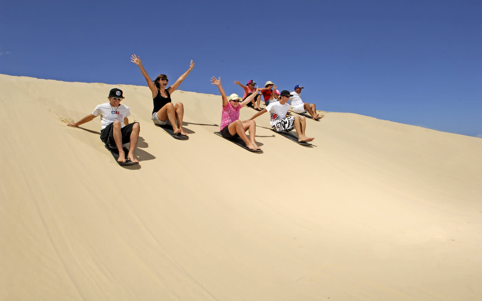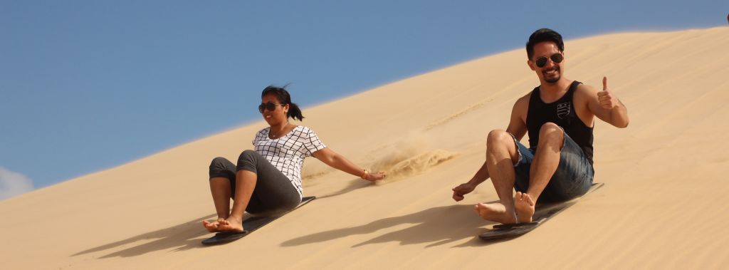 포트스티븐스로 향하여 스톡턴 샌드 듄에서 하루 종일 무제한 샌드보딩을 즐겨보세요! 친구와 가족을 데리고 탑승하여 보드에 올라 빠른 속도로 부드러운 모래밭을 미끄러져 내려가세요.