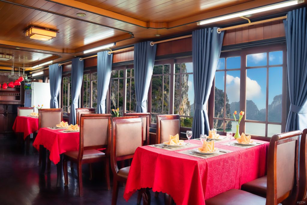 일찍 일어나 신선한 공기를 마시고 아침 식사를 즐긴 후 보혼섬으로 크루즈를 타세요. 대나무 보트나 카약으로 루온 동굴을 방문하세요. 배로 돌아와 선실에서 체크아웃합니다. 투안차우 항구로 돌아오는 길에 점심을 먹습니다.