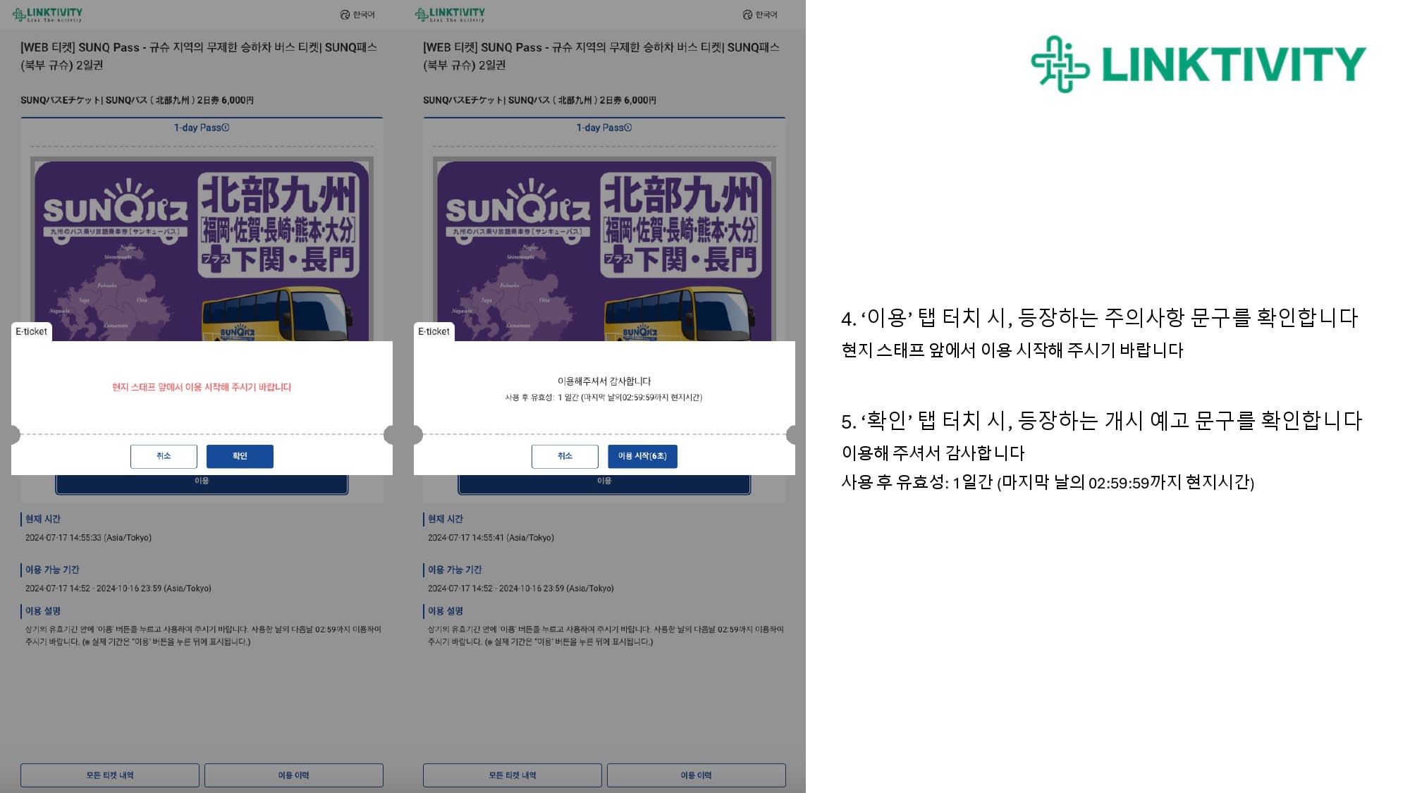 ■ 사용방법- 바우처 내 링크에 접속하여 현지 스태프 앞에서 이용 시작 버튼 클릭. 이용 중으로 변경된 티켓을 이용하여 탑승.