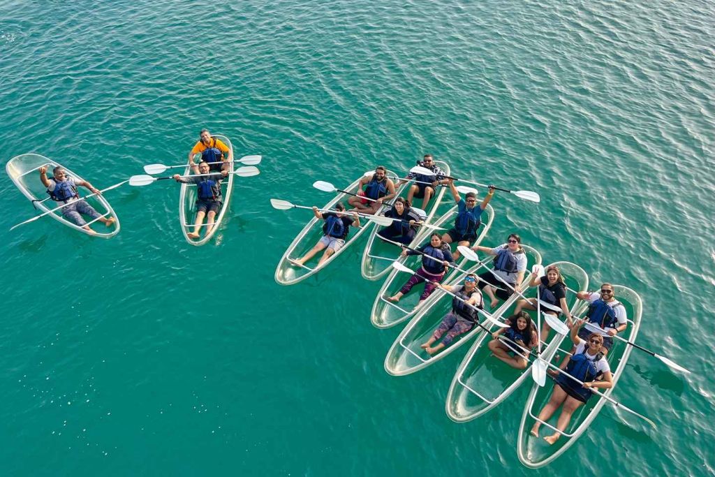 100% 투명한 카약을 타고 주메이라 베이 섬과 두바이의 고층 빌딩 사이의 웅장한 라군 지역을 탐험하세요. 카약은 커플, 팀워크, 탐험을 위한 완벽한 액티비티로 특히 물속을 관찰하며 즐길 수 있습니다. 자격을 갖춘 강사가 장비 사용 방법, 제한 사항 및 안전 절차에 대한 브리핑을 제공합니다. 셀프 가이드 투어 전, 투어 중 또는 투어 후에 추가 도움이 필요하면 언제든지 팀 내 강사에게 요청하시면 도움을 받으실 수 있습니다.