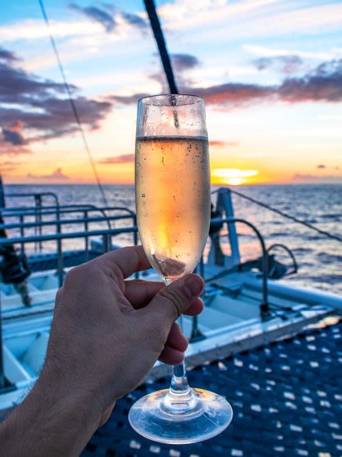 마우이의 고래 시즌(1월 4일 ~ 4월 12일)에는 고급 세일링 카타마란에서 고래를 구경하는 것은 꼭 해야 할 일입니다!