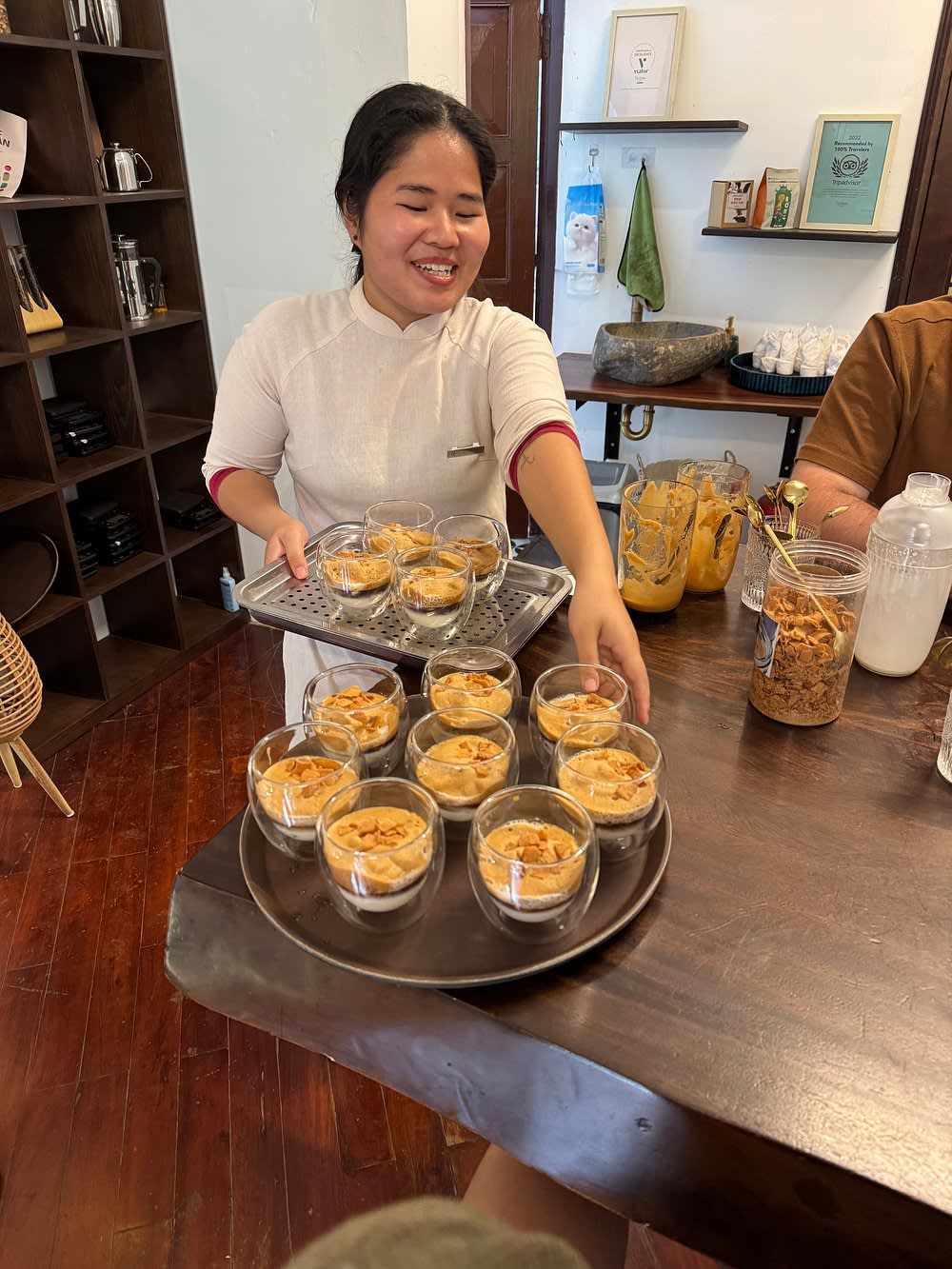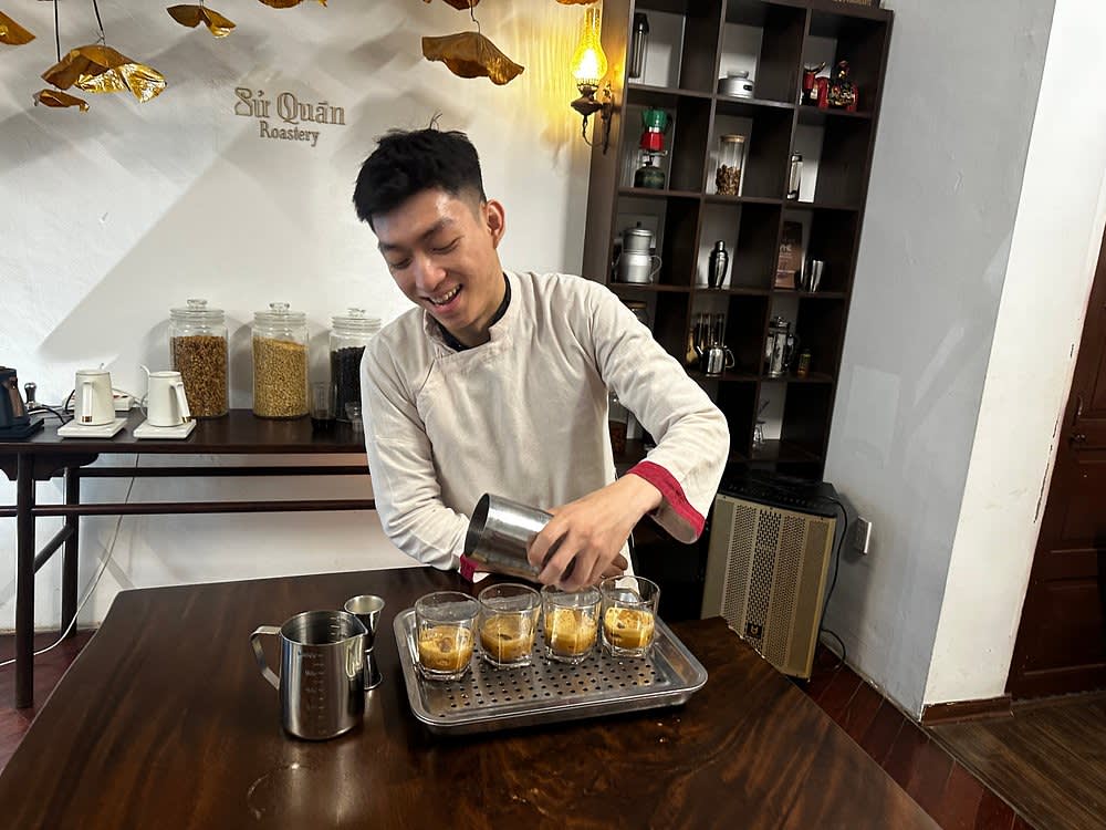 하노이의 번잡한 거리에서 벗어나 평화로운 정원 빌라로 들어오세요. 특별한 커피 모험을 위한 완벽한 은신처가 될 거예요. 단 1시간 30분 만에 Su Quan Roastery에서 진행되는 이 실습 워크숍을 통해 베트남 커피의 풍부한 세계에 빠져보세요. 친절한 현지 이야기꾼의 안내에 따라 세 가지 대표적인 핀 스타일 커피(에그 커피, 코코넛 커피 등)를 직접 갈고, 따르고, 맛보며 즐거운 시간을 보내실 수 있습니다. 단순한 시음이 아닌, 아늑하고 차분한 공간에서 맛, 문화, 역사를 탐험하는 여정이며, 여행 계획에도 완벽하게 어울립니다.