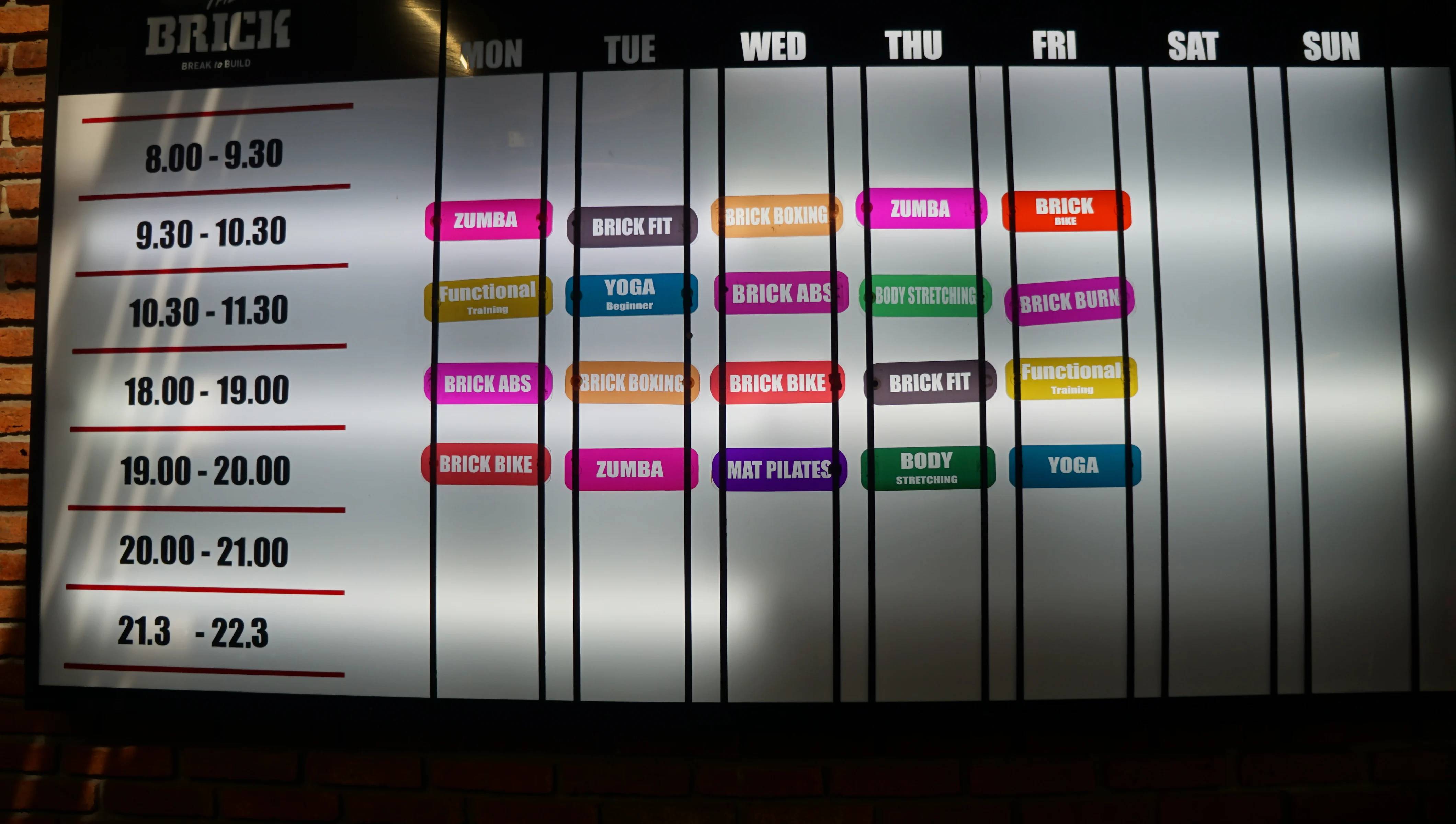 예시 프로그램: ZUMBA, Functional Training, BRICK ABS, BRICK BIKE, BRICK FIT, YOGA, BRICK BOXING, MAT PILATES, BODY STRETCHING, BRICK BURN