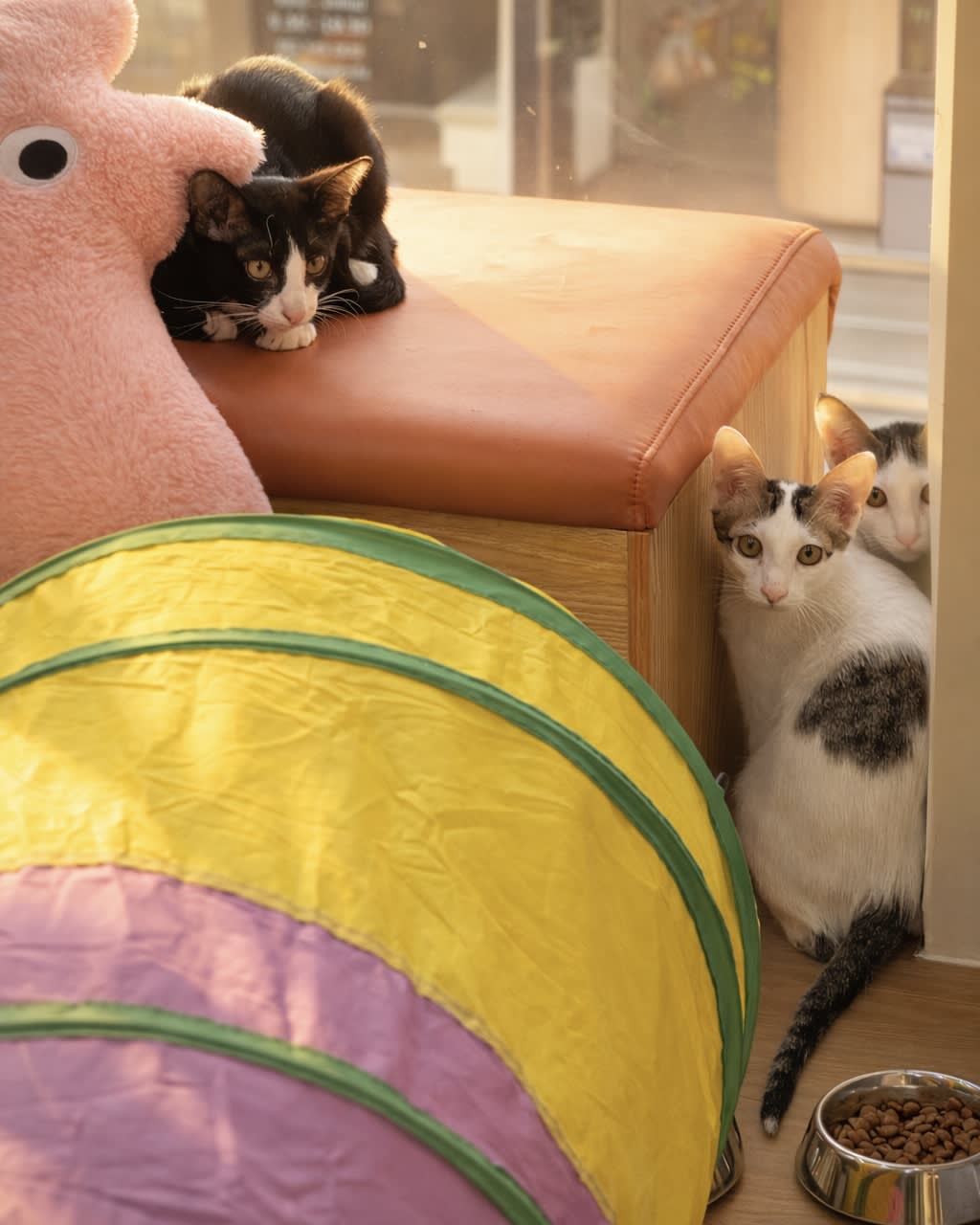 ASOK PETHOUSE CAT CAFE는 맛있는 음식과 음료를 함께 즐길 수 있는 방콕 유일의 입양 가능한 아기 고양이 카페로, 고양이 애호가들이 입양 가능한 고양이 친구들과 함께 완벽한 커피 한 잔을 즐길 수 있는 곳입니다. 이 카페는 시그니처 음료, 파스타 요리, 건강한 콜드프레스 주스를 포함하여 아침부터 저녁까지 모든 메뉴를 제공합니다. 🍳🥐🍰 Asok Pethouse Cat Cafe는 완벽한 짝을 찾는 사람과 고양이 모두에게 따뜻하고 치유적인 공간을 제공합니다.
