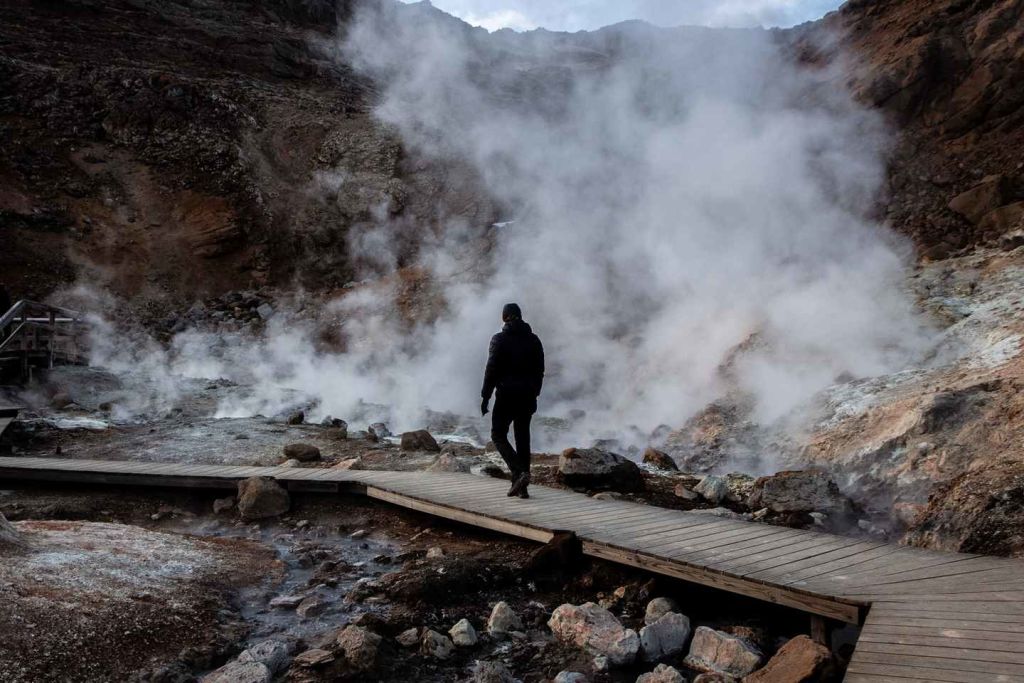 • 군누버 온천에서 보글보글 끓는 진흙탕과 쉭쉭 솟구치는 증기 통풍구 구경하기
