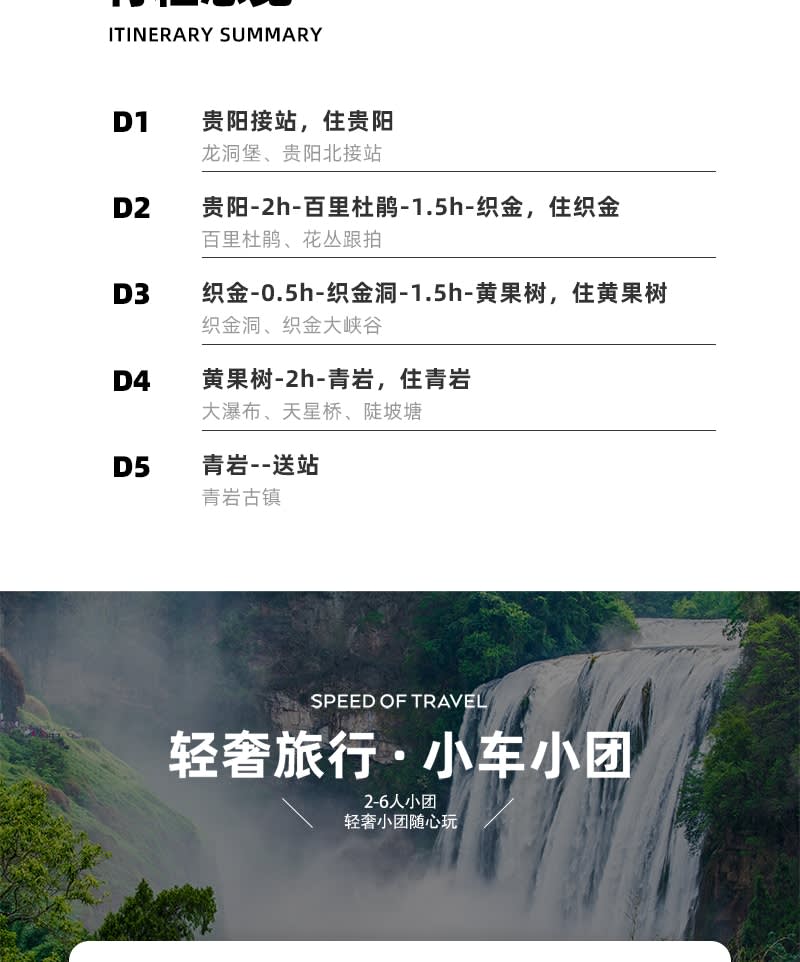 *1일차: 구이양에서 픽업, 구이양에서 숙박 *2일차: 구이양-2시간-바리 두주안-1시간 30분-즈진