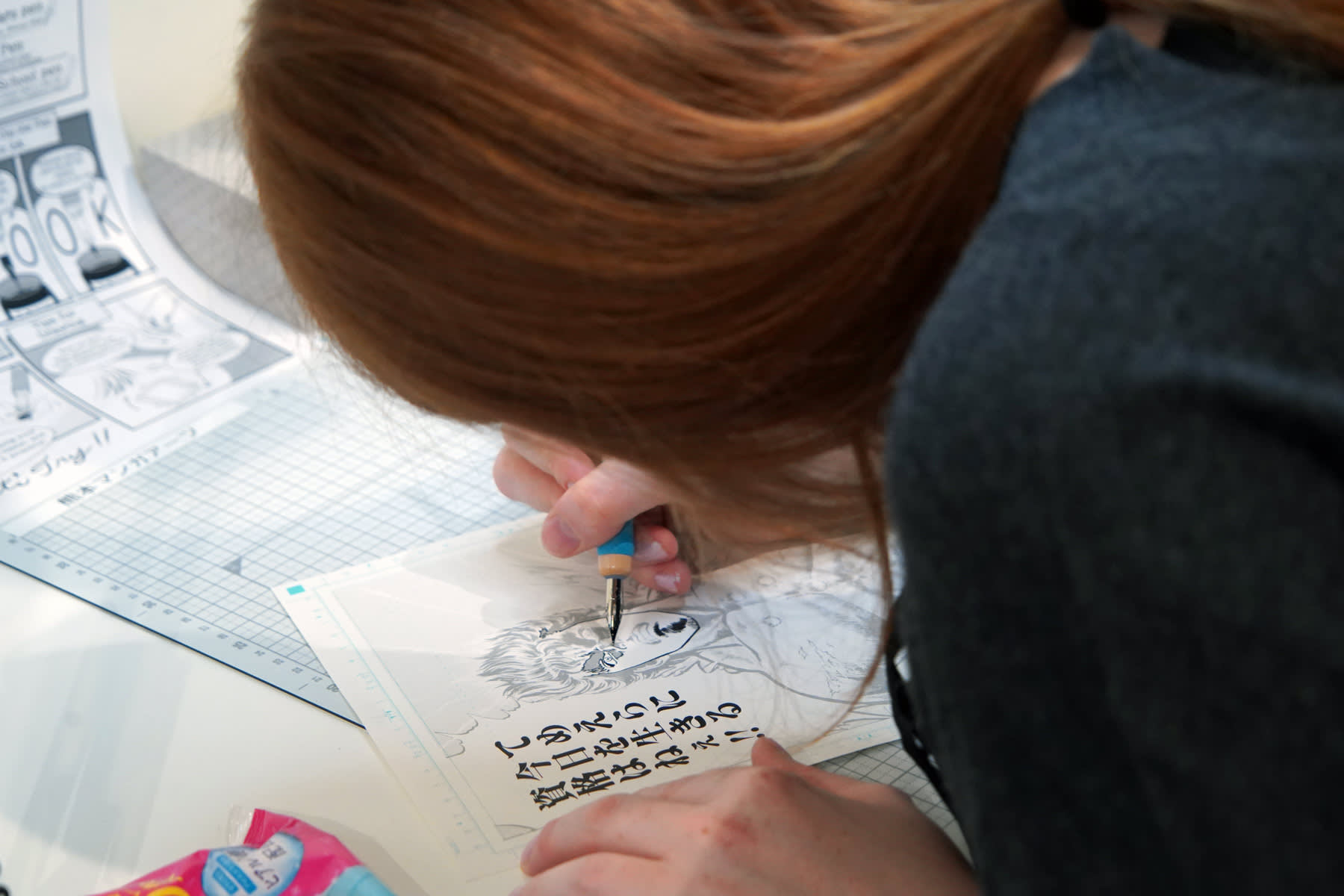 프로 만화가가 사용하는 'G펜'을 사용하여 북두의 권, 시티 헌터 등 유명 작품의 만화 원고에 펜을 넣는 체험.