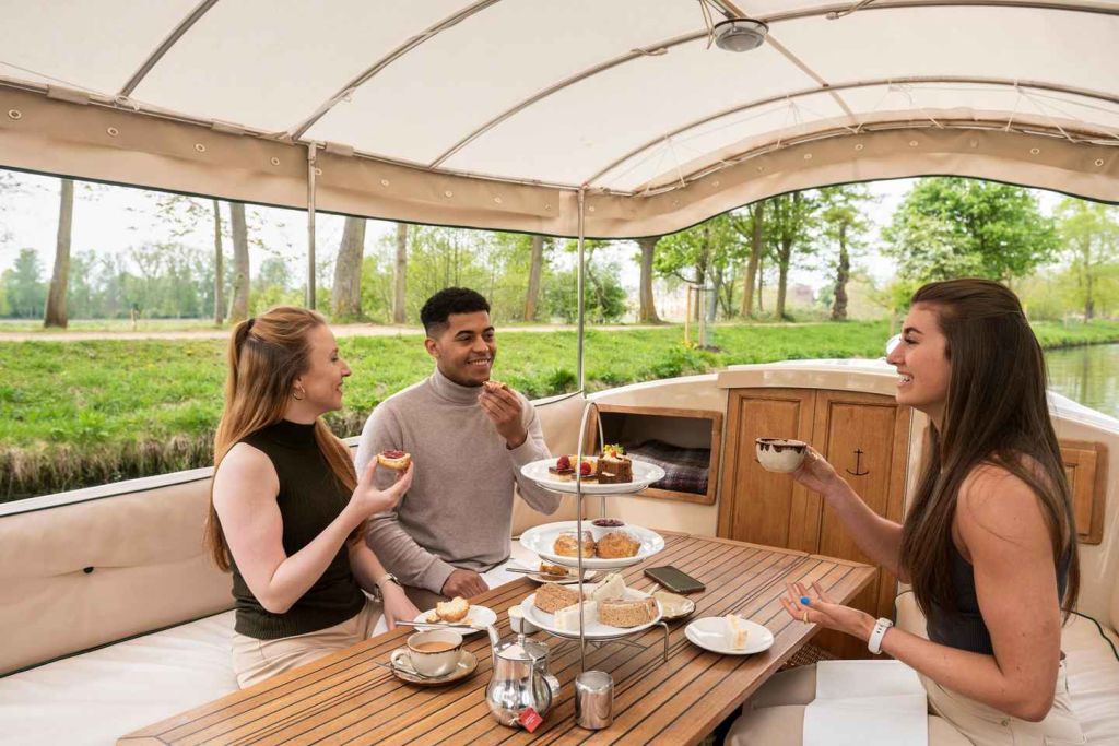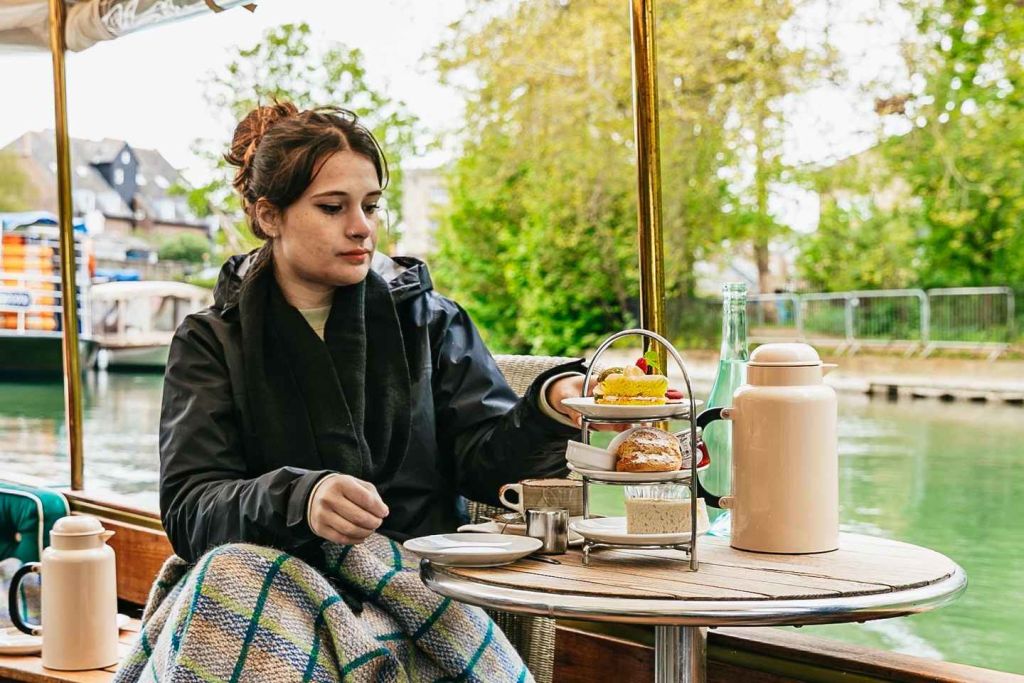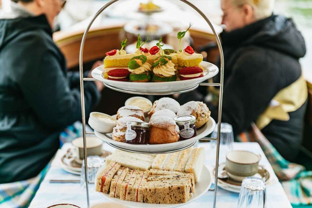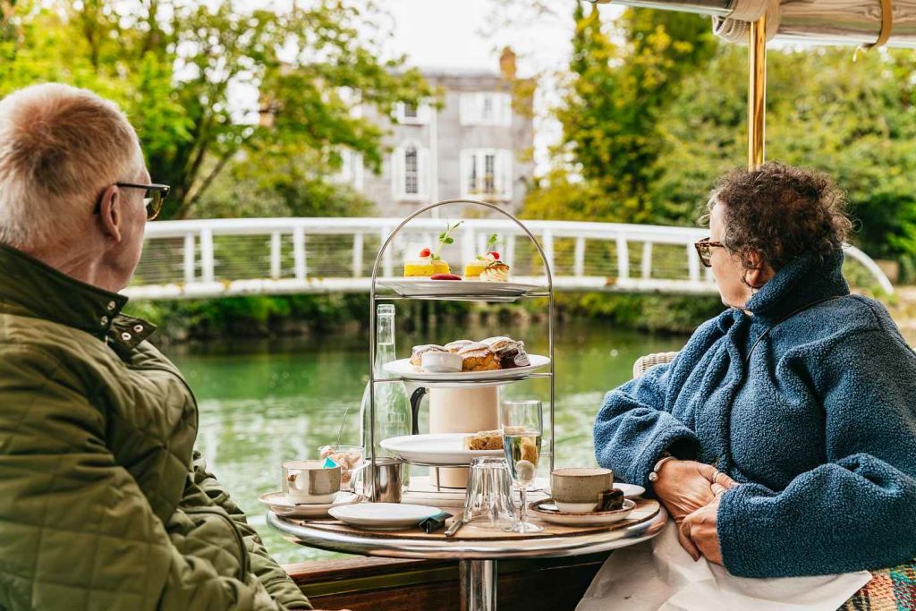 보트를 타고 유명한 강변 레스토랑인 폴리(Folly)에서 제공하는 완벽한 애프터눈 티를 맛보세요. 전통 메뉴에는 일반적으로 핑거 샌드위치, 딸기 잼과 클로티드 크림이 들어간 홈메이드 스콘, 케이크, 타르트 또는 프티 푸르, 차가 포함됩니다.