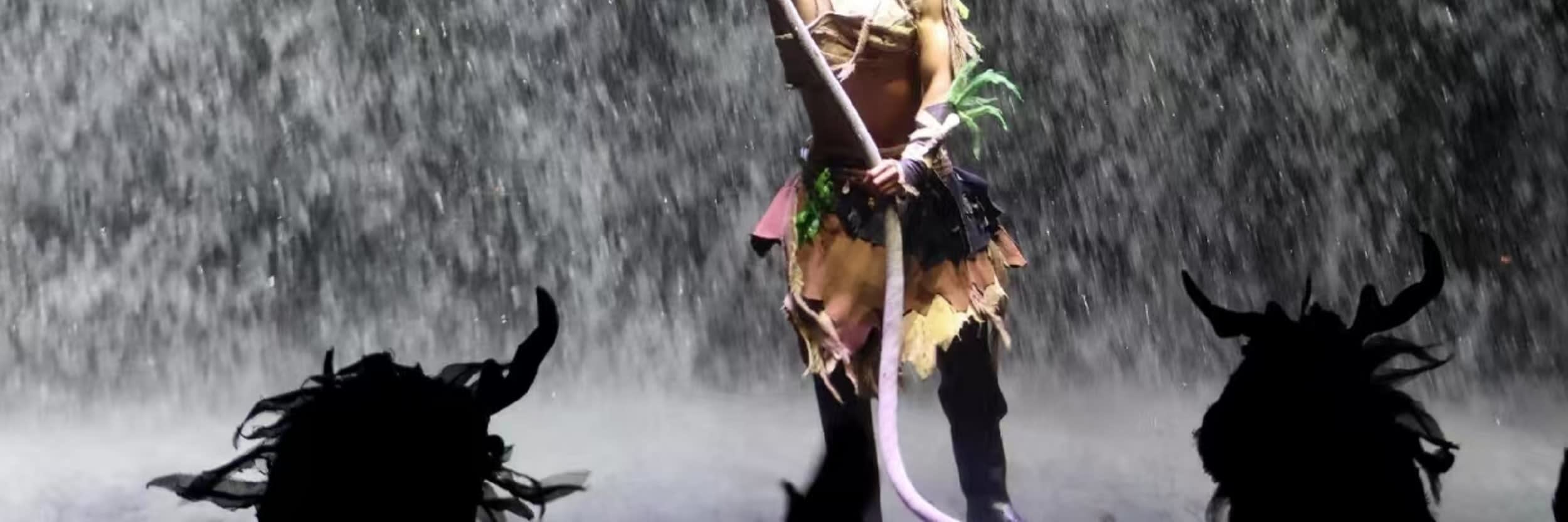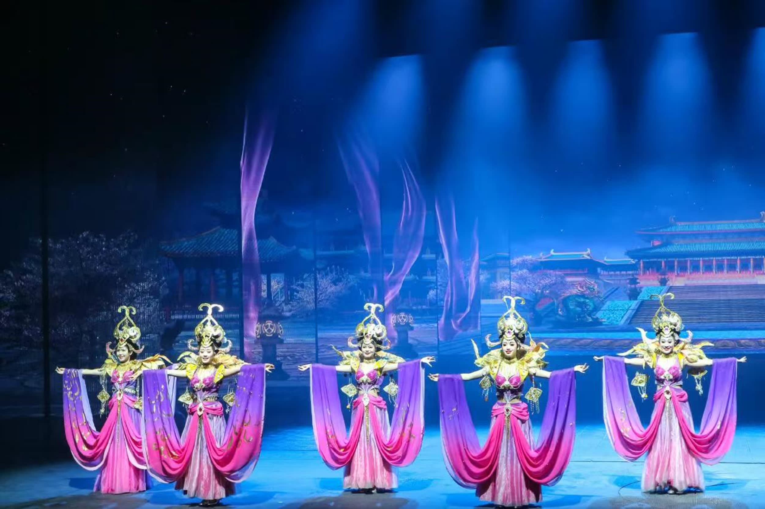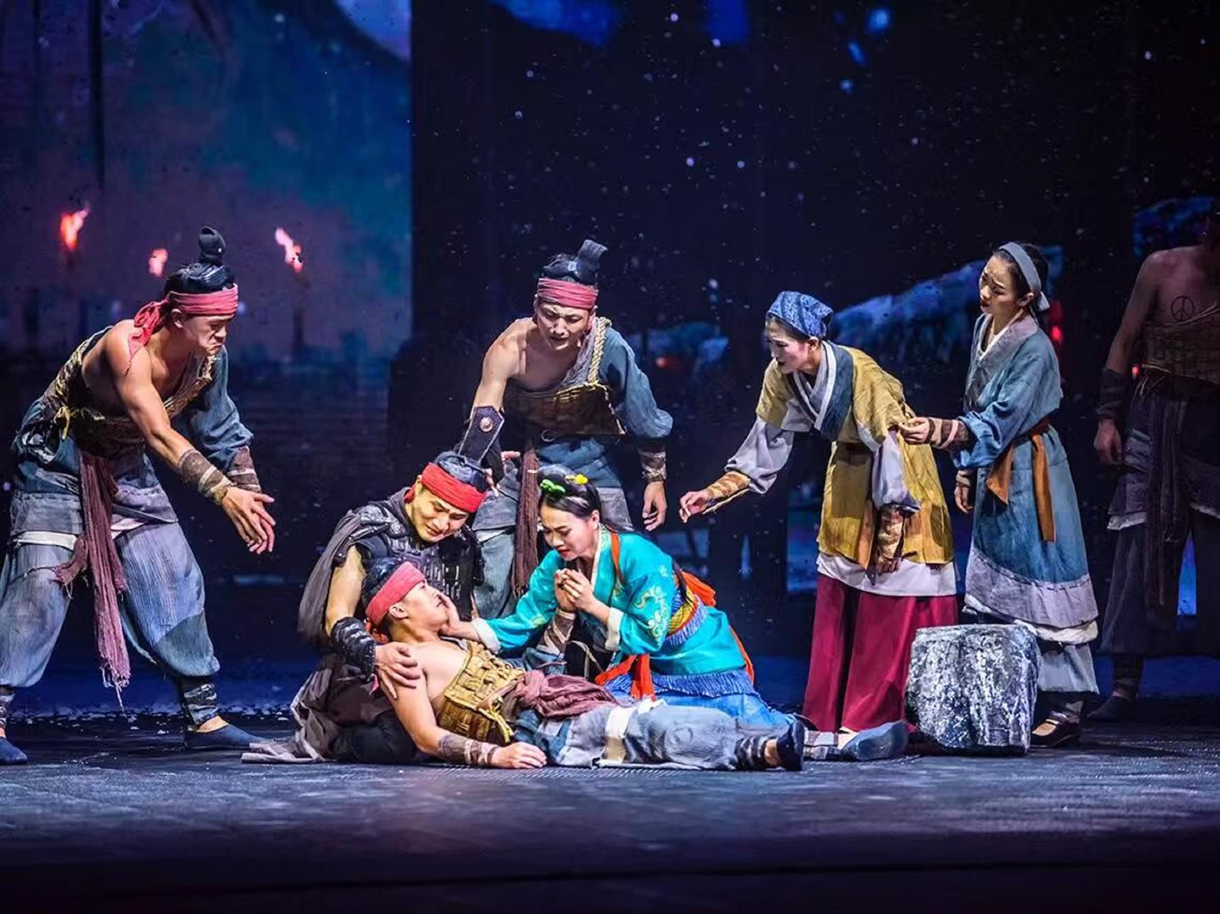 * "3차원 무대, 공간적 상상의 경계를 허물다"는 전통적인 무대의 한계를 깨고 땅, 물, 공중 등 3차원의 공간 디자인을 활용합니다. 배우들은 높은 고도에서 날아 내려올 수도 있고, 물 위를 걸을 수도 있습니다. 위아래로 움직일 수 있는 기계식 무대와 결합되어, 관객은 마치 역사적 현장에 있는 듯한 느낌을 받으며 모든 멋진 순간에 푹 빠질 수 있습니다.