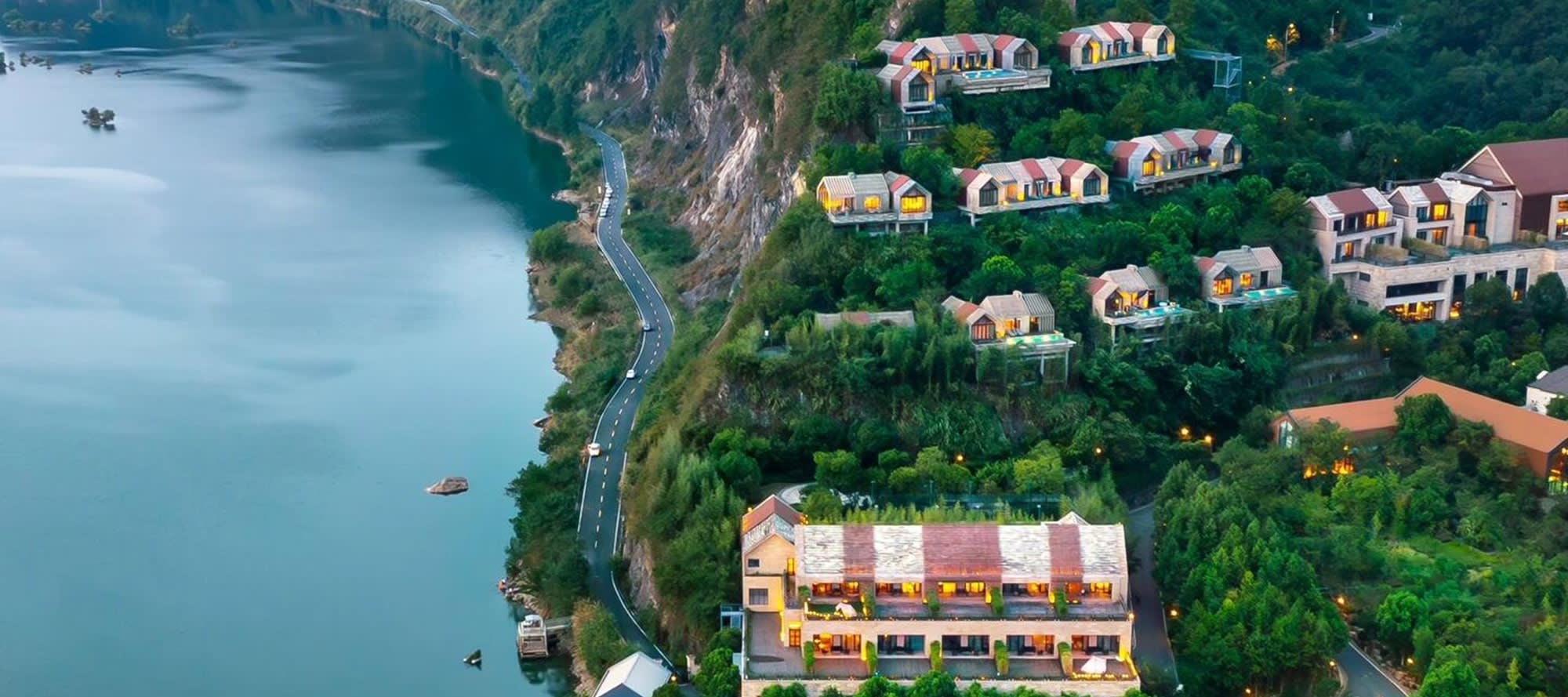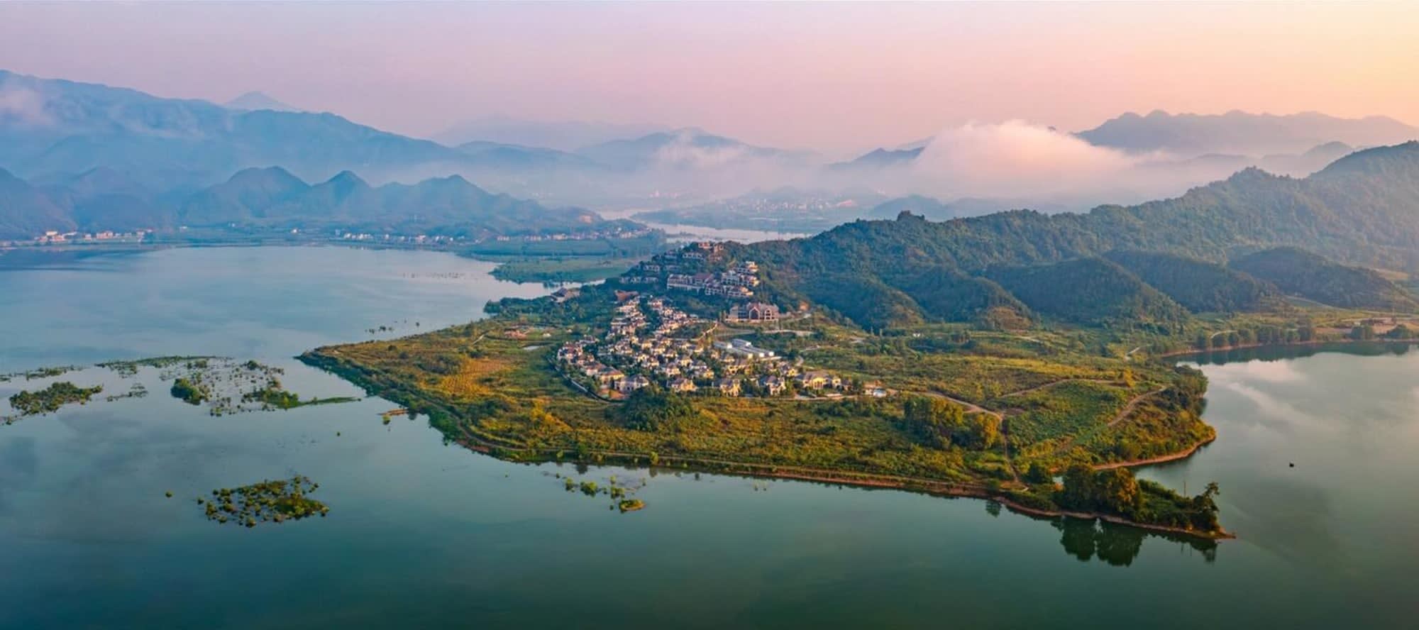 유람선이 나아감에 따라 계화도 부춘산도거가 점점 눈에 들어옵니다. 산과 물 사이에 숨겨진 이 무릉도원은 독특한 매력으로 모든 방문객을 매료시킵니다. 섬에는 사계절 내내 계수나무 향기가 가득하며, 특히 가을에는 온 산과 들에 노란 꽃이 만발하여 향긋한 꽃향기가 공기 중에 퍼져 상쾌한 기분을 선사합니다. 부춘산도거는 섬에 기대어 지어져 주변의 자연 경관과 완벽하게 조화를 이루고 있으며, 각 객실은 마치 대자연의 선물과 같습니다. 창문을 열면 산과 물이 어우러진 아름다운 경치를 감상할 수 있어 아늑하고 편안하게 대자연과 친밀하게 교감할 수 있습니다. 이곳에서 계수나무 숲 사이를 거닐며 새들의 노랫소리를 듣고, 강가에서 낚시를 하며 평화롭고 한가로운 시간을 보내거나, 전망대에 올라 계화도 전체의 아름다운 경치를 한눈에 담아 대자연의 웅장함을 느껴보세요.