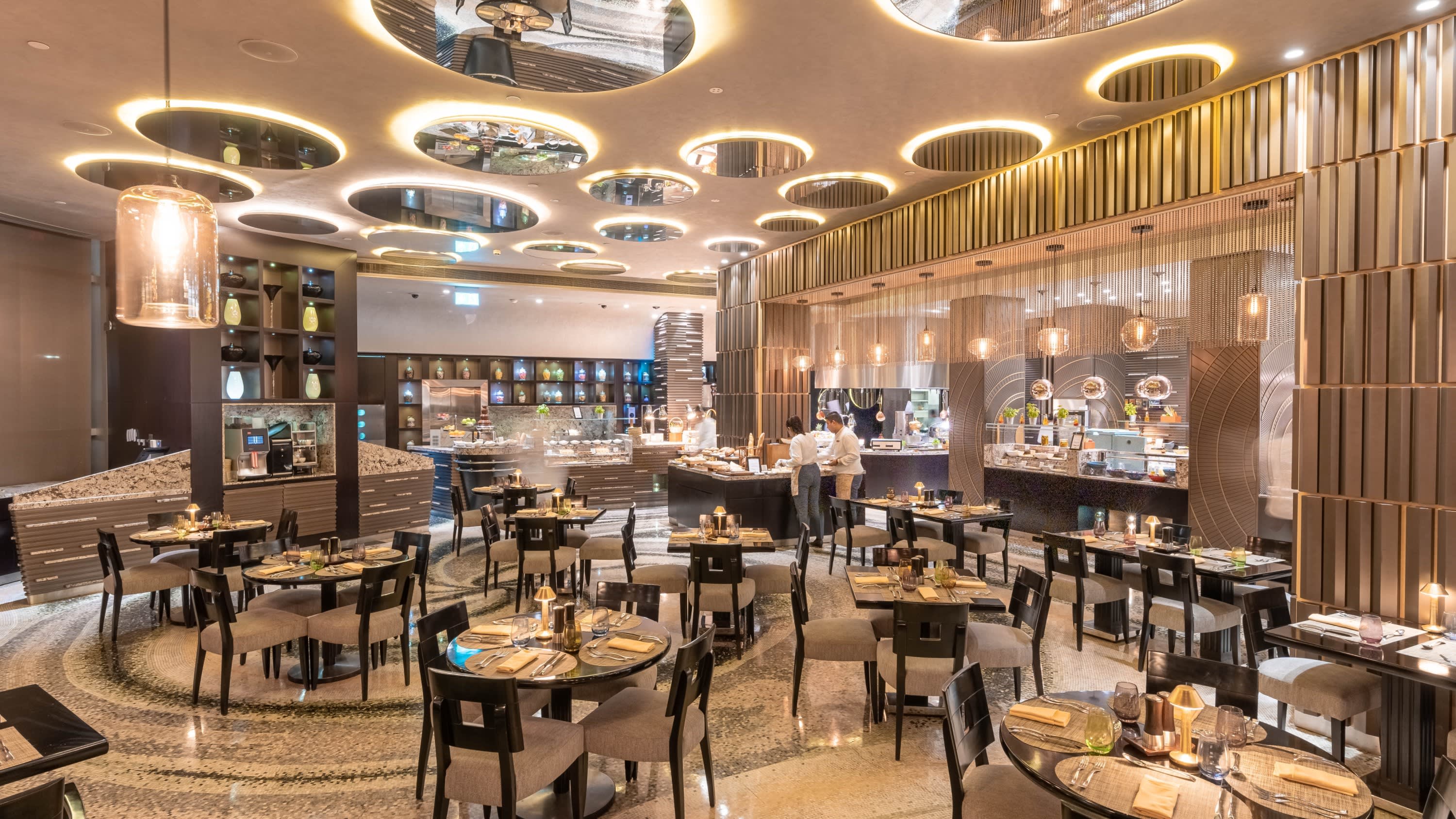 주메이라 에미레이트 타워에 위치한 문도에서 다채로운 세계 각국의 요리를 맛보며 호화로운 식사를 즐겨보세요. 향긋한 커리, 신선한 샐러드, 촉촉한 로스트, 풍미 가득한 지중해 요리 등 세계 각국의 특별한 요리를 맛볼 수 있습니다. 숙련된 셰프가 즉석 카빙 스테이션에서 부드러운 고기를 능숙하게 썰어 제공하는 모습도 감상하고, 취향에 따라 소스와 토핑을 선택하여 나만의 파스타를 만들어 보세요. 스시 애호가라면 신선한 사시미, 니기리, 창의적인 롤을 맛보며 미식의 즐거움을 만끽할 수 있습니다. 주말 저녁 뷔페에서는 인도, 아시아, 중동 등 세계 각국의 더욱 풍성한 진미를 맛볼 수 있습니다. 문도에서는 점심과 저녁 모두 잊을 수 없는 미식 경험을 선사합니다.