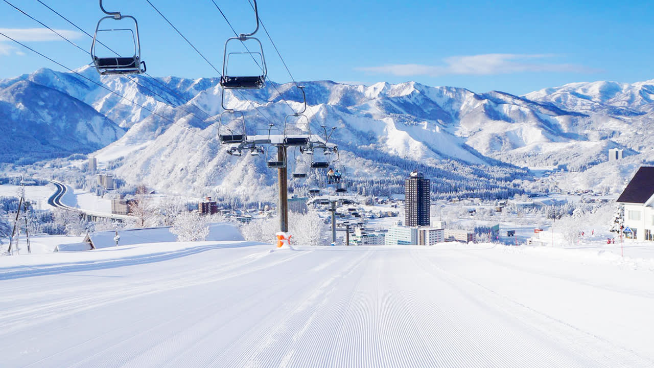 * 이와라 스키장에서는 스키를 타면서 남쪽의 다니가와다케 산맥의 장엄한 경치를 감상할 수 있습니다.