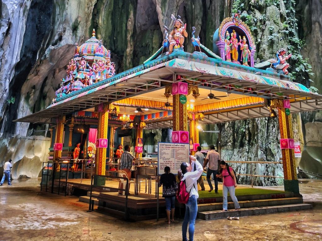 272개의 계단을 올라 천연 석회암 및 우뚝 솟은 바투 동굴 조각상을 구경해보세요.