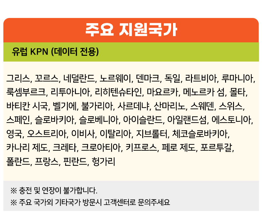■ 이용국가 : 유럽전역 (지원국가 이미지 참고)