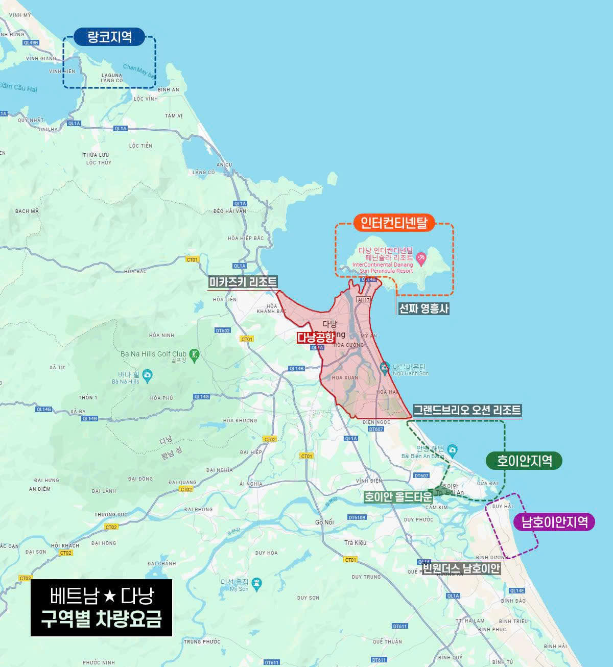 ※ 차량이용구간 : 다낭시티+바나힐 혹은 다낭시티+호이안