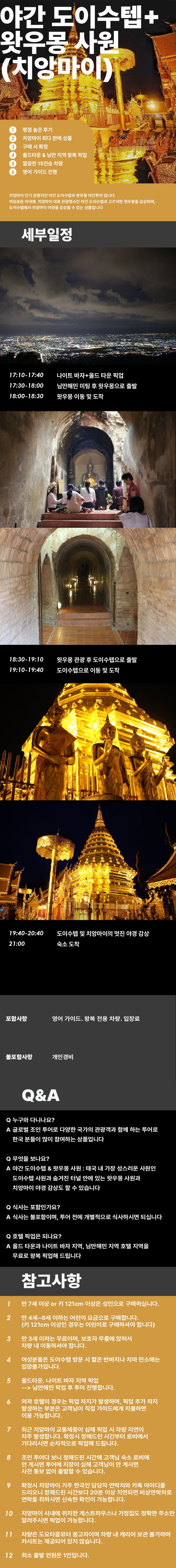 • 여유로운 저녁에 출발하는 야간 도이 수텝과 왓우몽 사원을 부담 없는 일정으로 구성한 상품입니다!