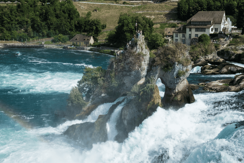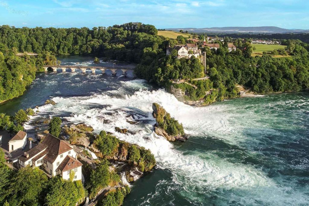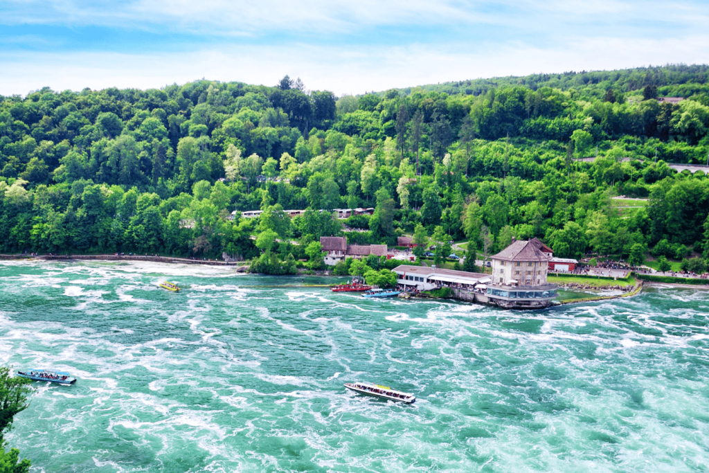 유럽 최대의 평지 폭포인 라인 폭포의 압도적인 힘과 아름다움을 감상하세요.